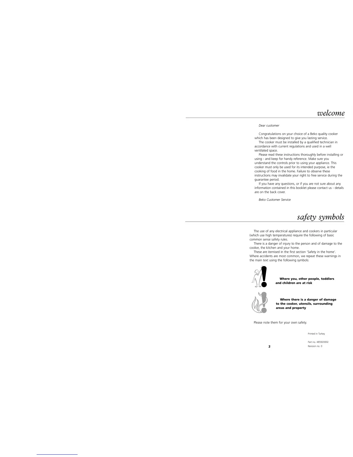 Beko DC3511 - Safety Symbols; Personal Safety Warnings; Appliance and Property Damage Warnings