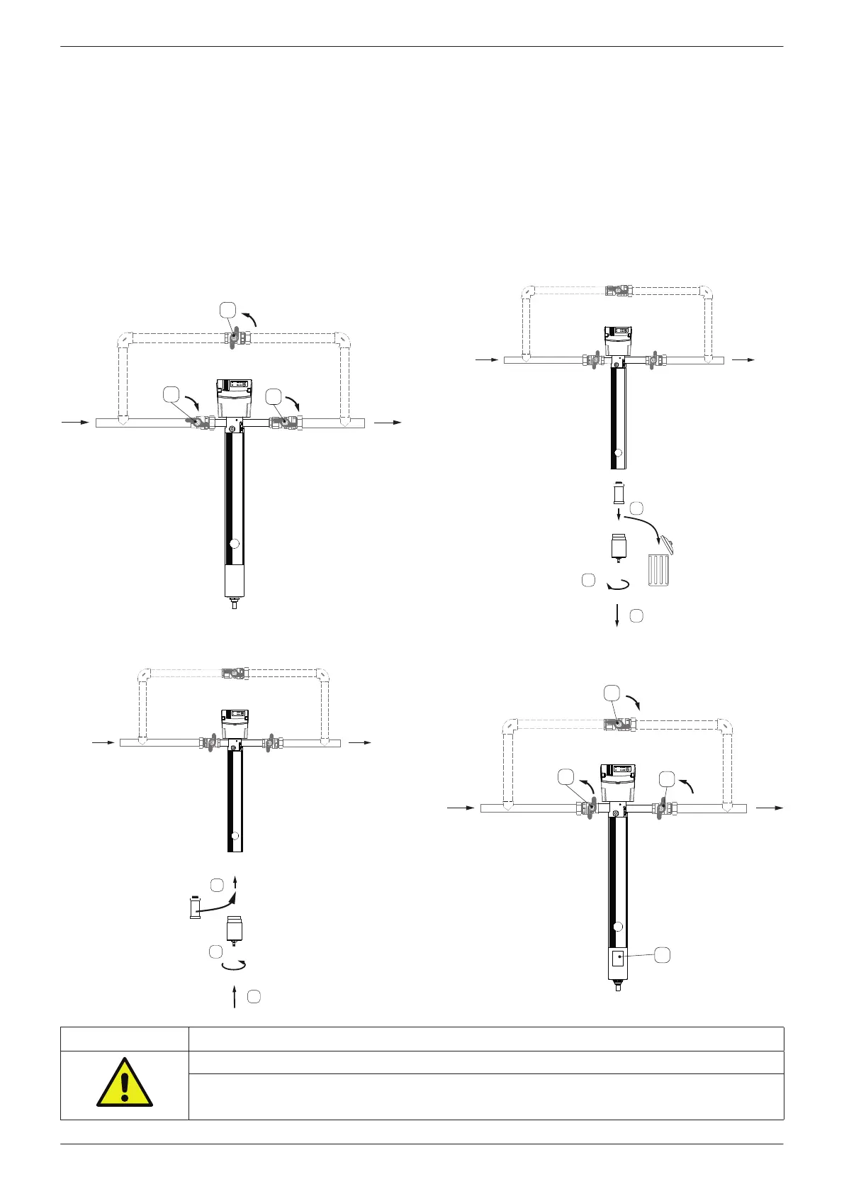 1. Close the shut-o valves (1) and open the shut-o valve (2) of the bypass.