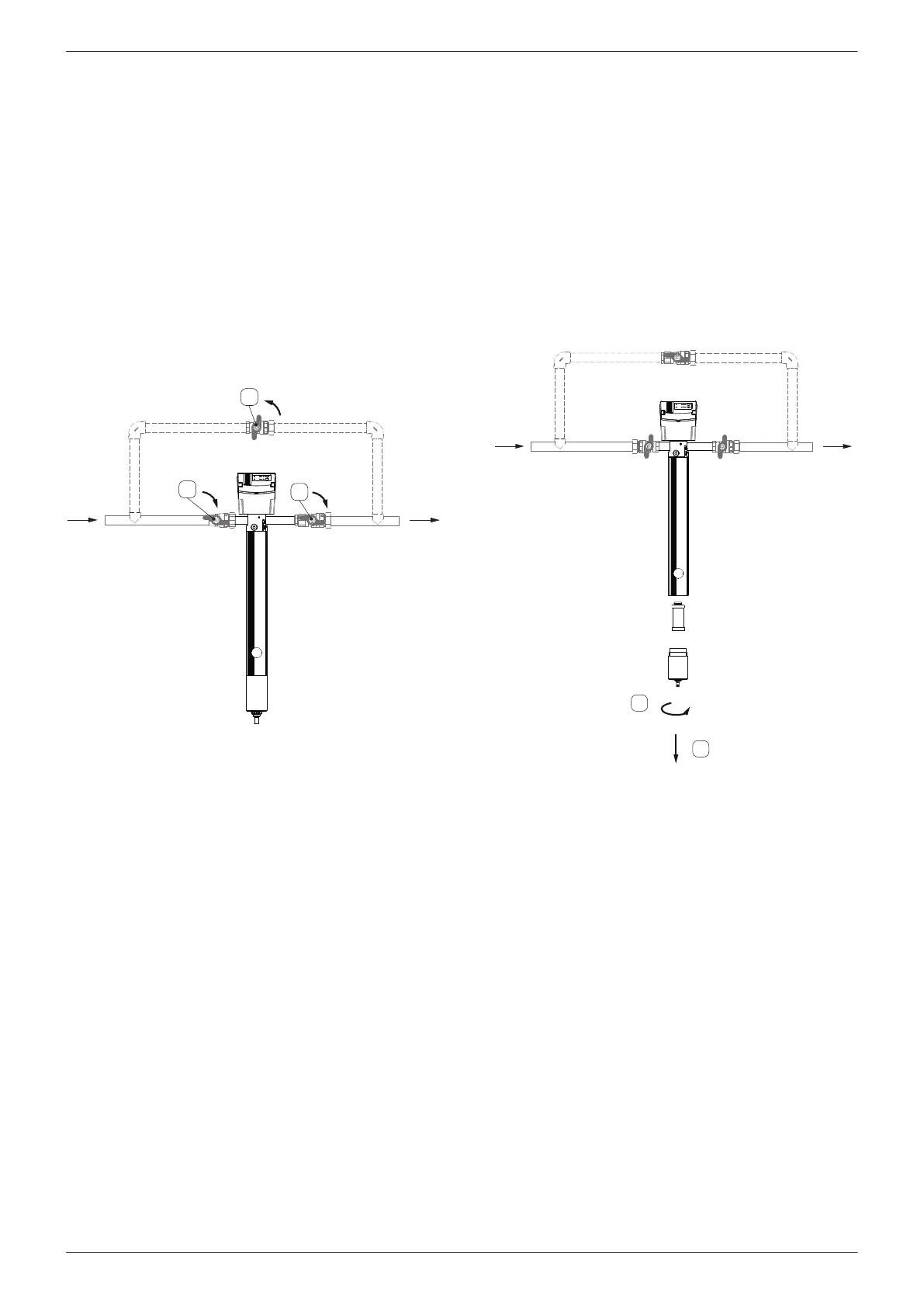 1. Close the shut-o valves (1) and open the shut-o valve (2) of the bypass.