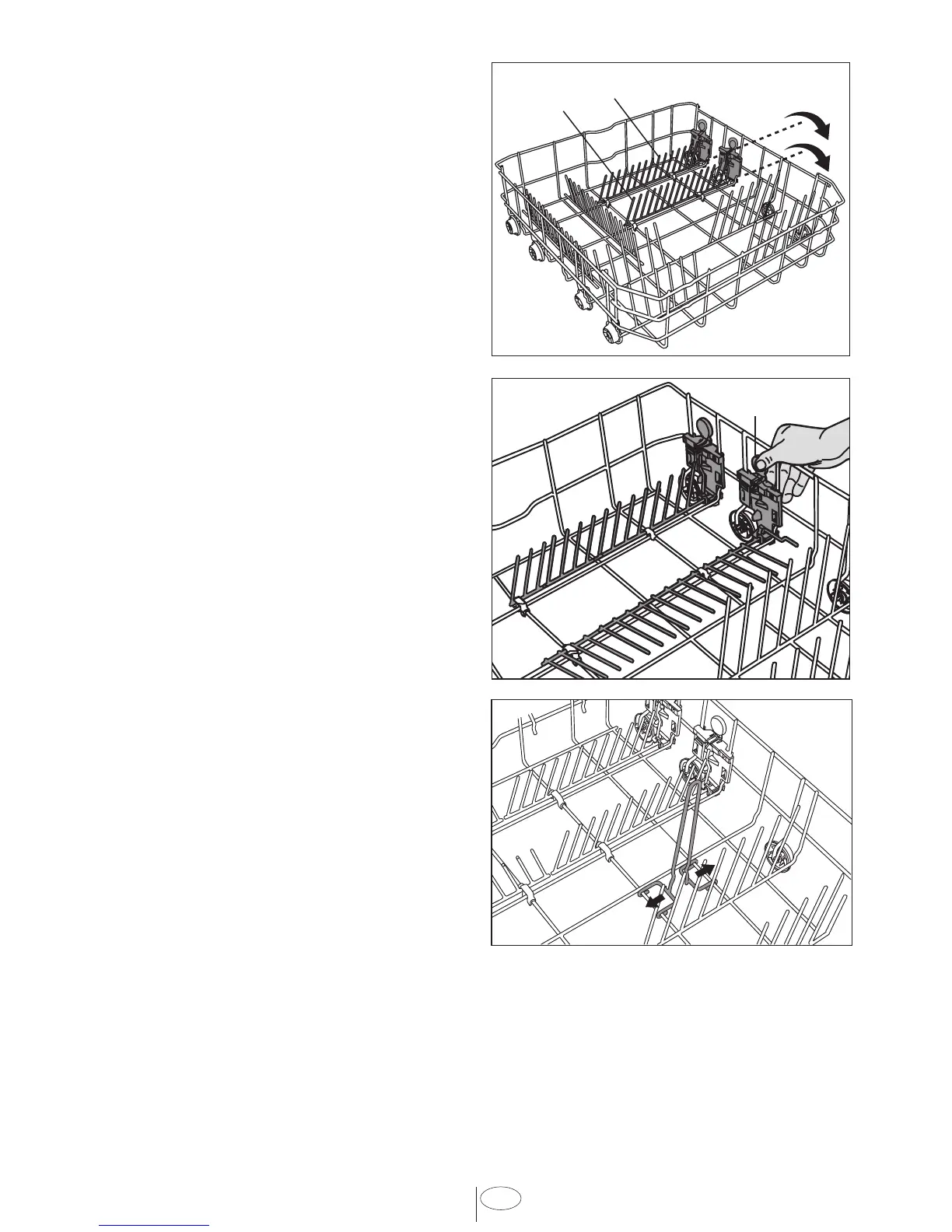support rods" in the lower basket of