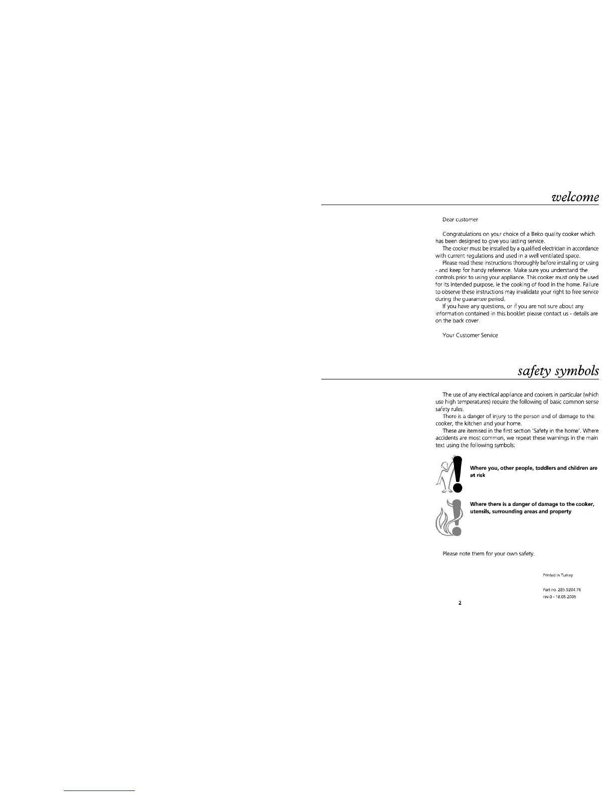 Beko DV655 - Welcome and Safety Symbols; Safety Symbols Explanation