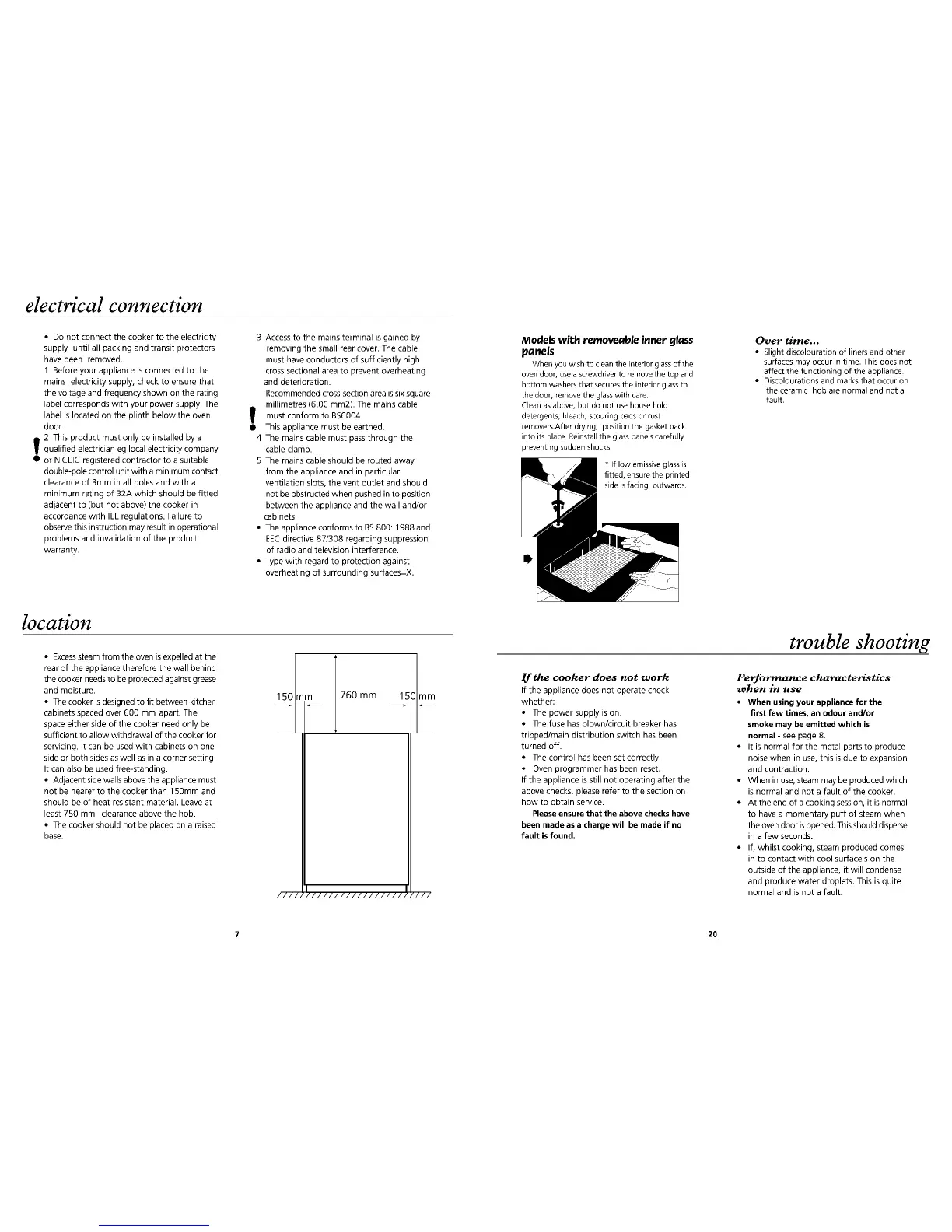 Beko DV655 - Electrical Connection; Cooker Location Requirements; Troubleshooting Cooker Issues; Cooker Not Working Troubleshooting