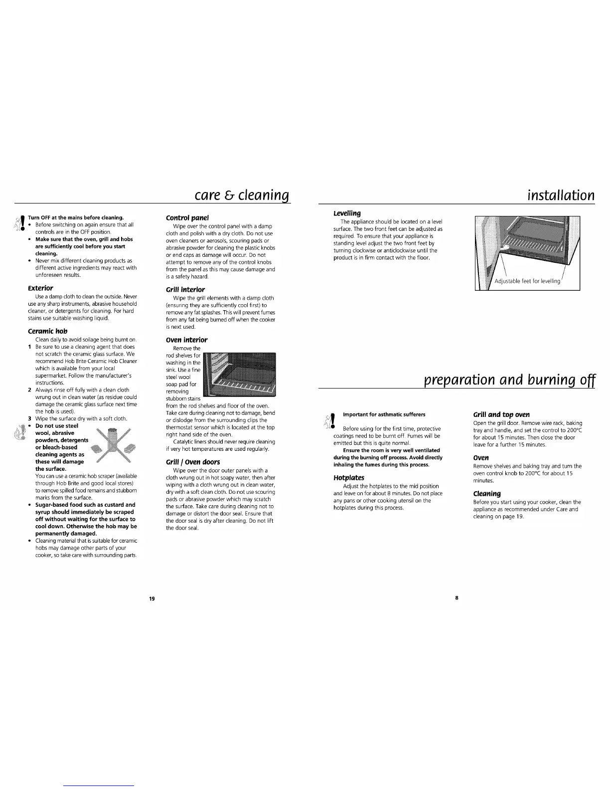 Beko DVC565 - Cooker Care and Initial Setup; Care and Cleaning Instructions