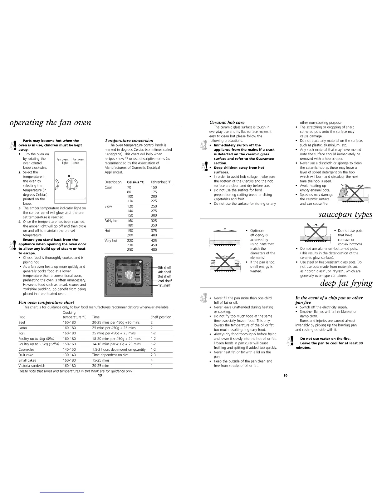 Beko DVC62 - Operating the Fan Oven; Saucepan Types; Deep Fat Frying; Ceramic Hob Care