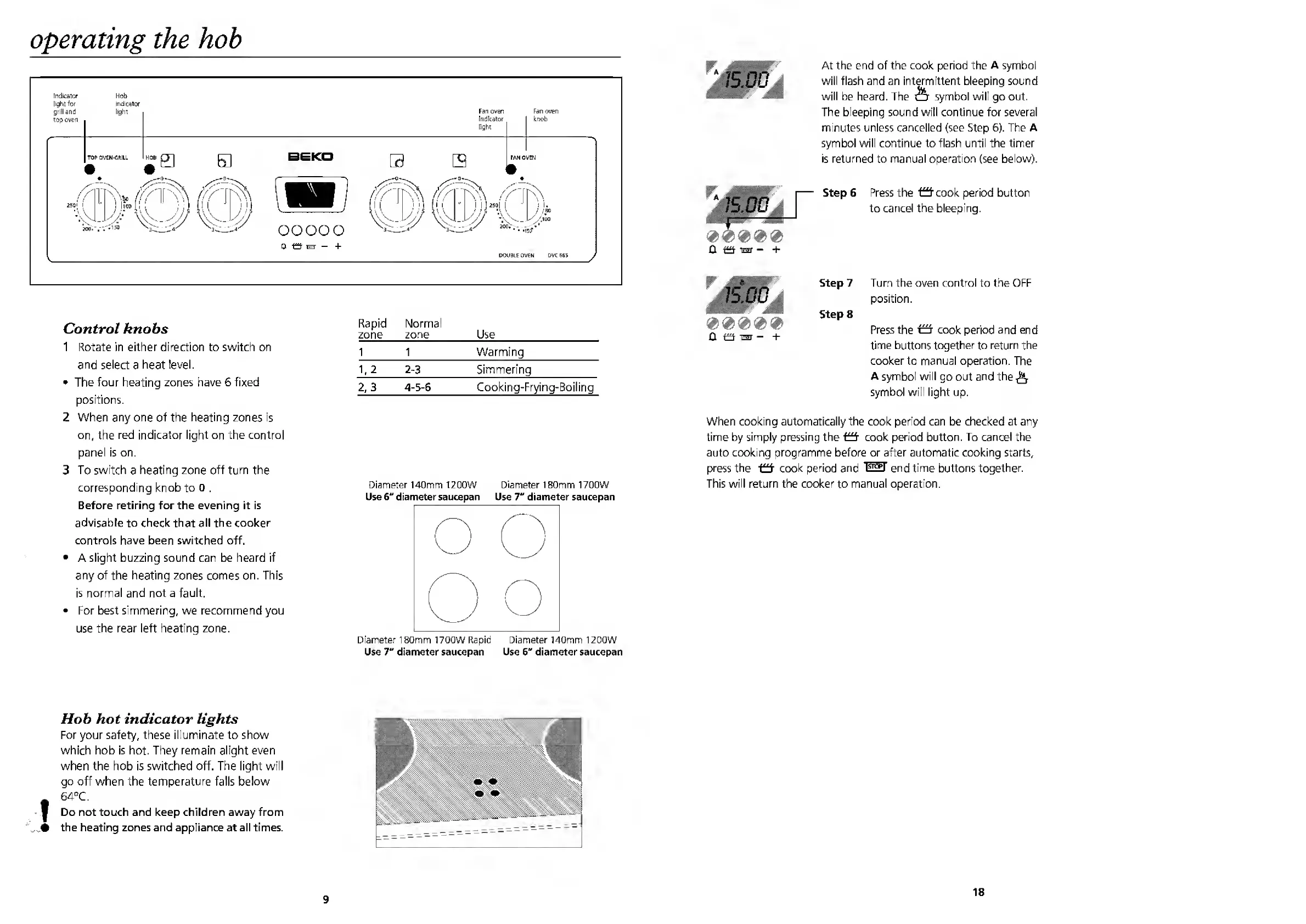 Beko DVC665 - Operating the Hob; Hob Control Knobs and Indicators