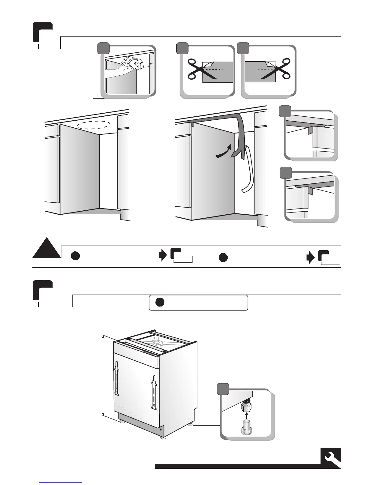 Beko DW600 - Installation Step 1: Panel Preparation; Step 1 a: Cutting Panel; Step 1 b: Cutting Panel; Step 1 c: Cutting Panel