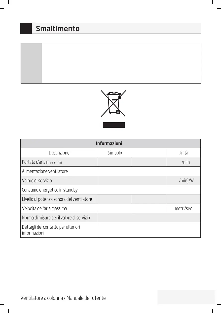 riuti domestici al termine della sua vita utile. Il dispositivo usato deve essere portato a