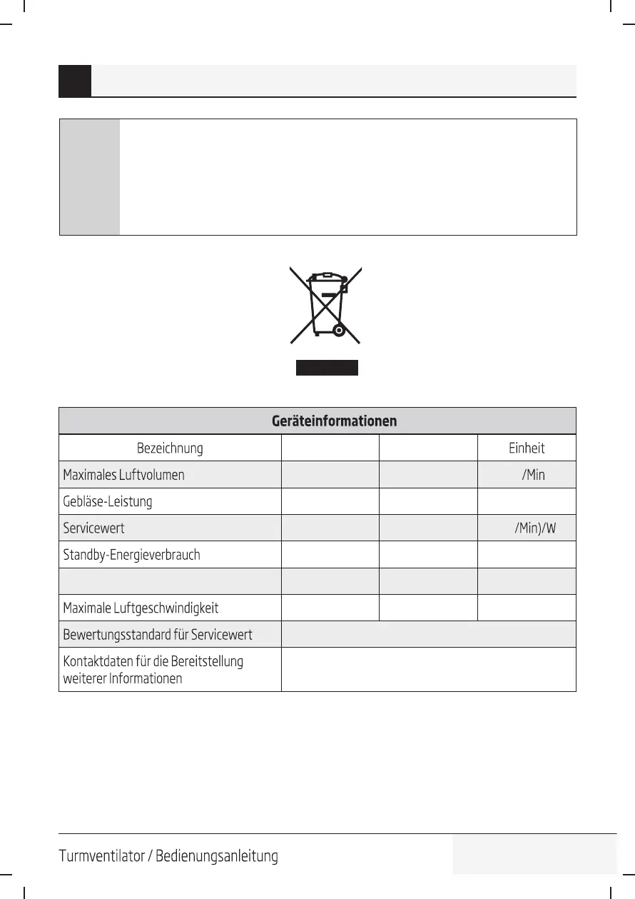 Dieses Symbol zeigt an, dass dieses Gerät am Ende seiner Einsatzzeit nicht