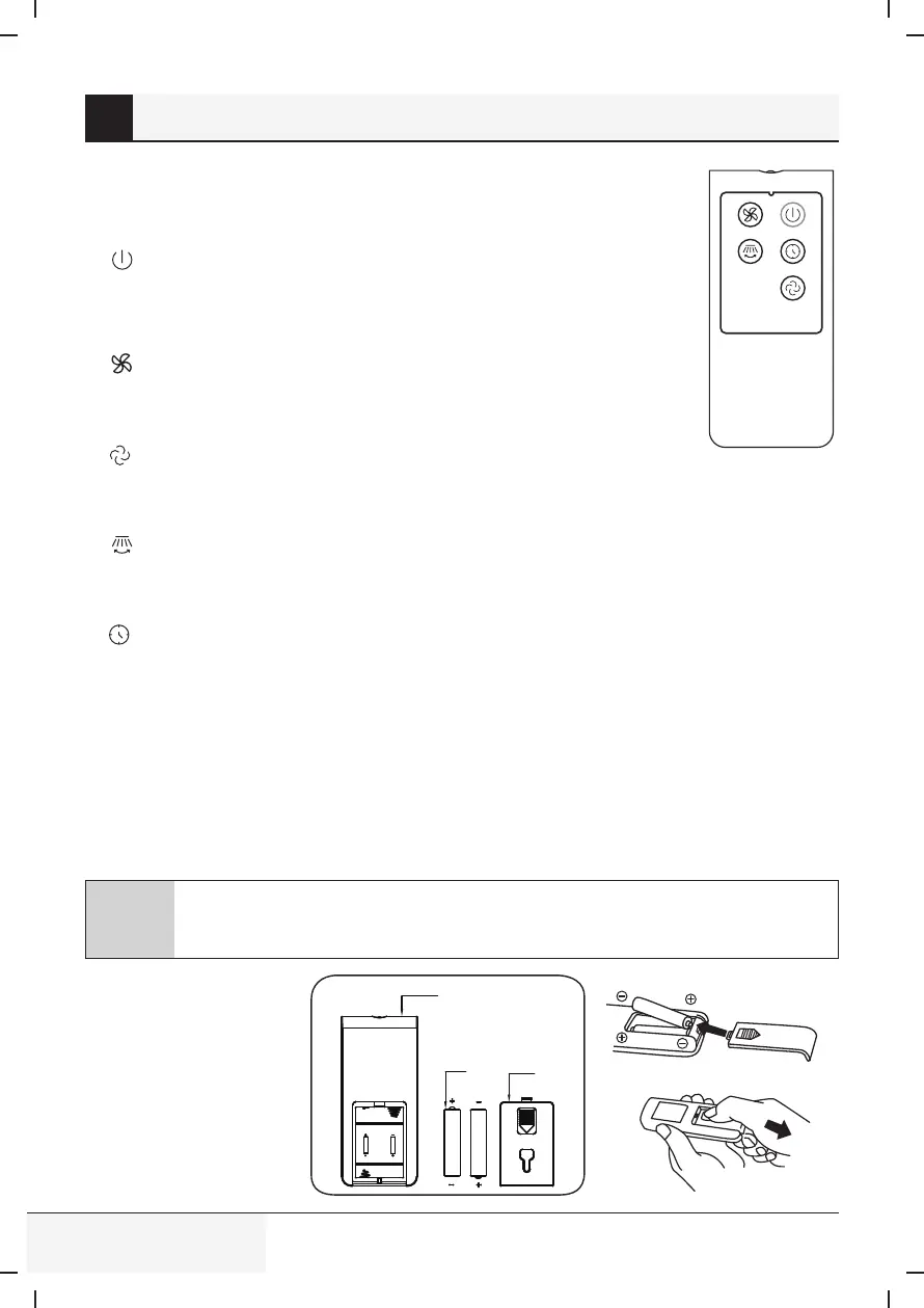 After the fan has started, press this key to select oscillation mode. The lights on the display can