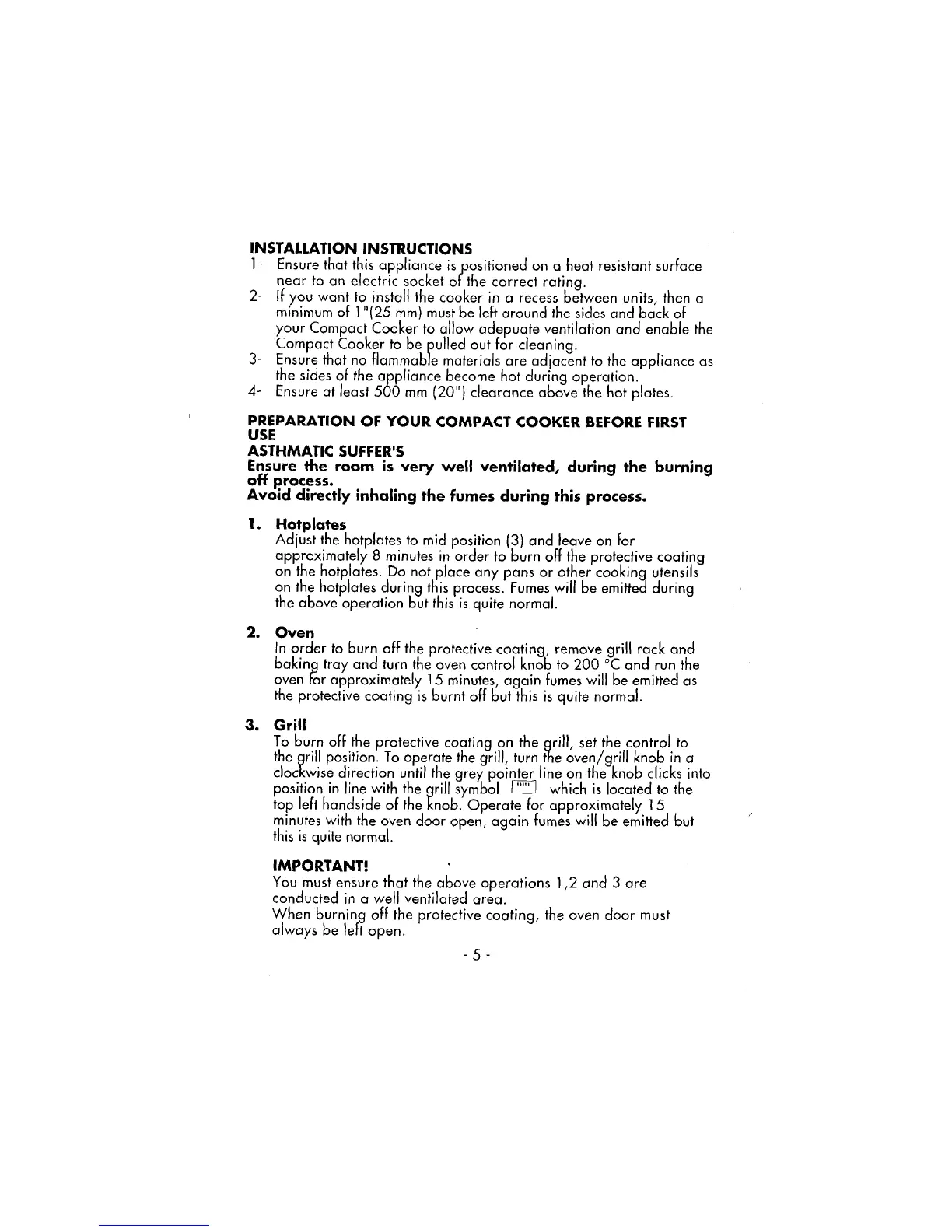 Beko MC112 - Installation Instructions; Before First Use; Hotplates; Oven;Grill
