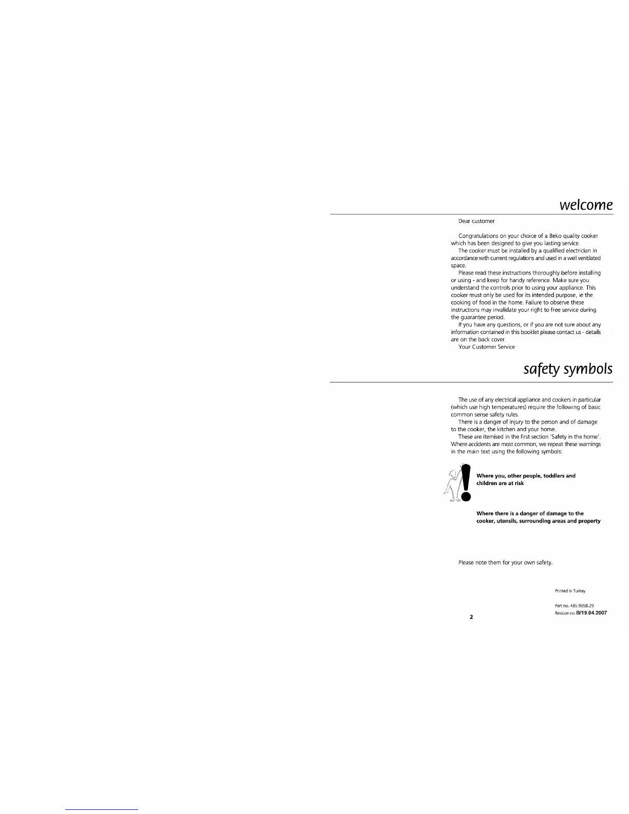 Beko S502 - welcome; safety symbols