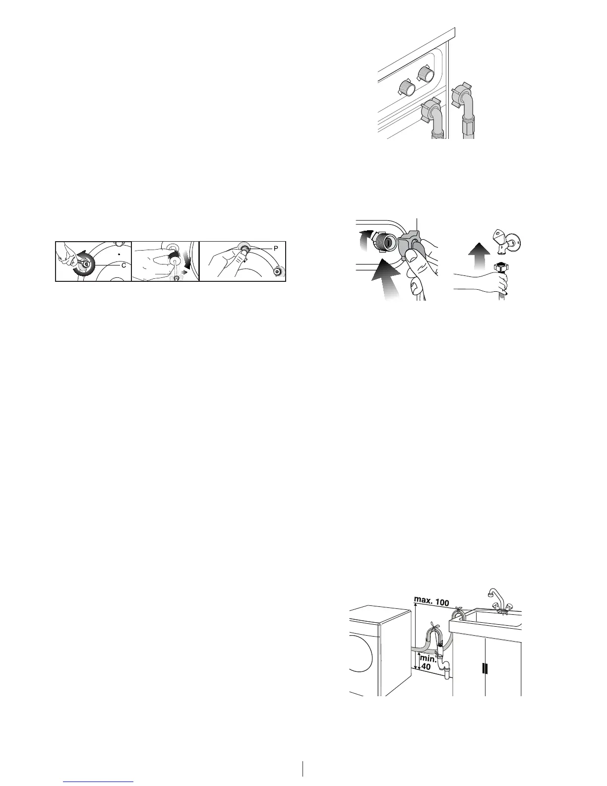 ieplūdi un noliešanu no veļas mašīnas, stingri