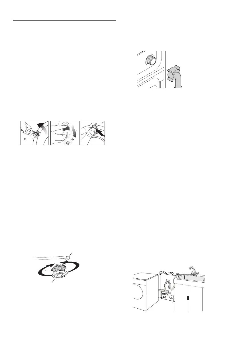 • The end of the drain hose must be