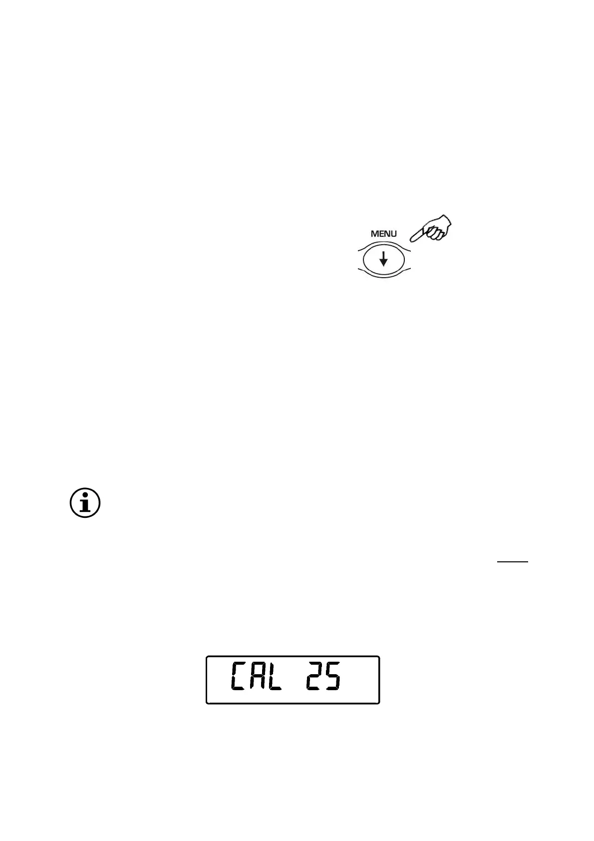 1. Select the calibration mode you wish by pressing MENU button in sequence: