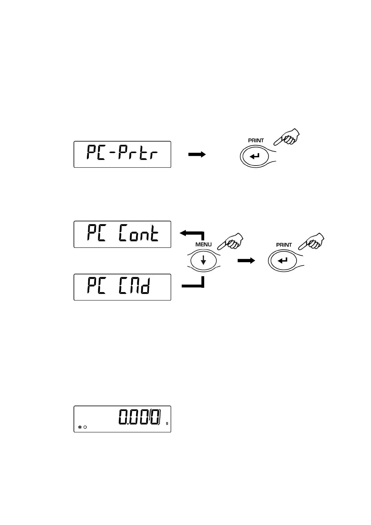 “unitS”, then press the MENU button until it is displayed “PC-PRTR” message then