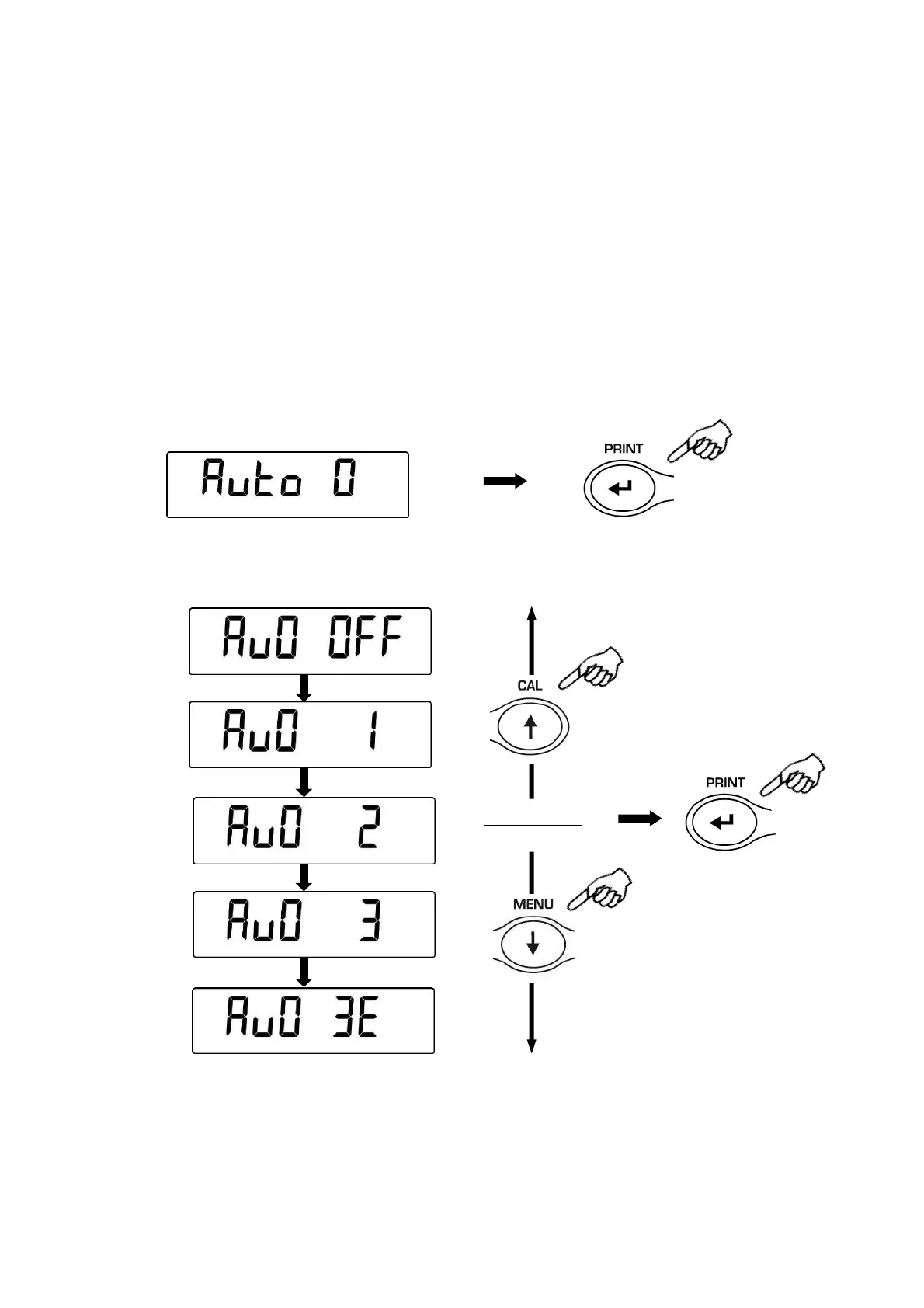 then press MENU button until the message “AUTO 0” is displayed, then press PRINT