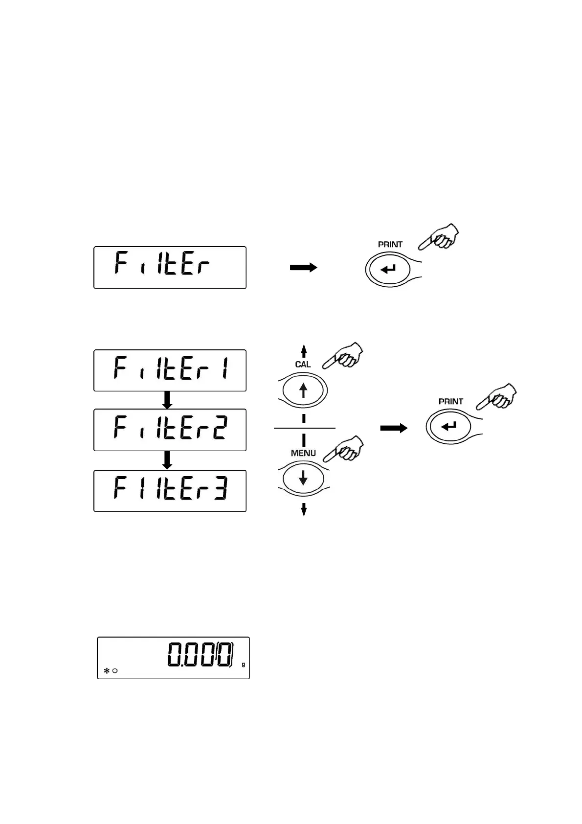 then press MENU button until the message “FILTER” is displayed then confirm it by