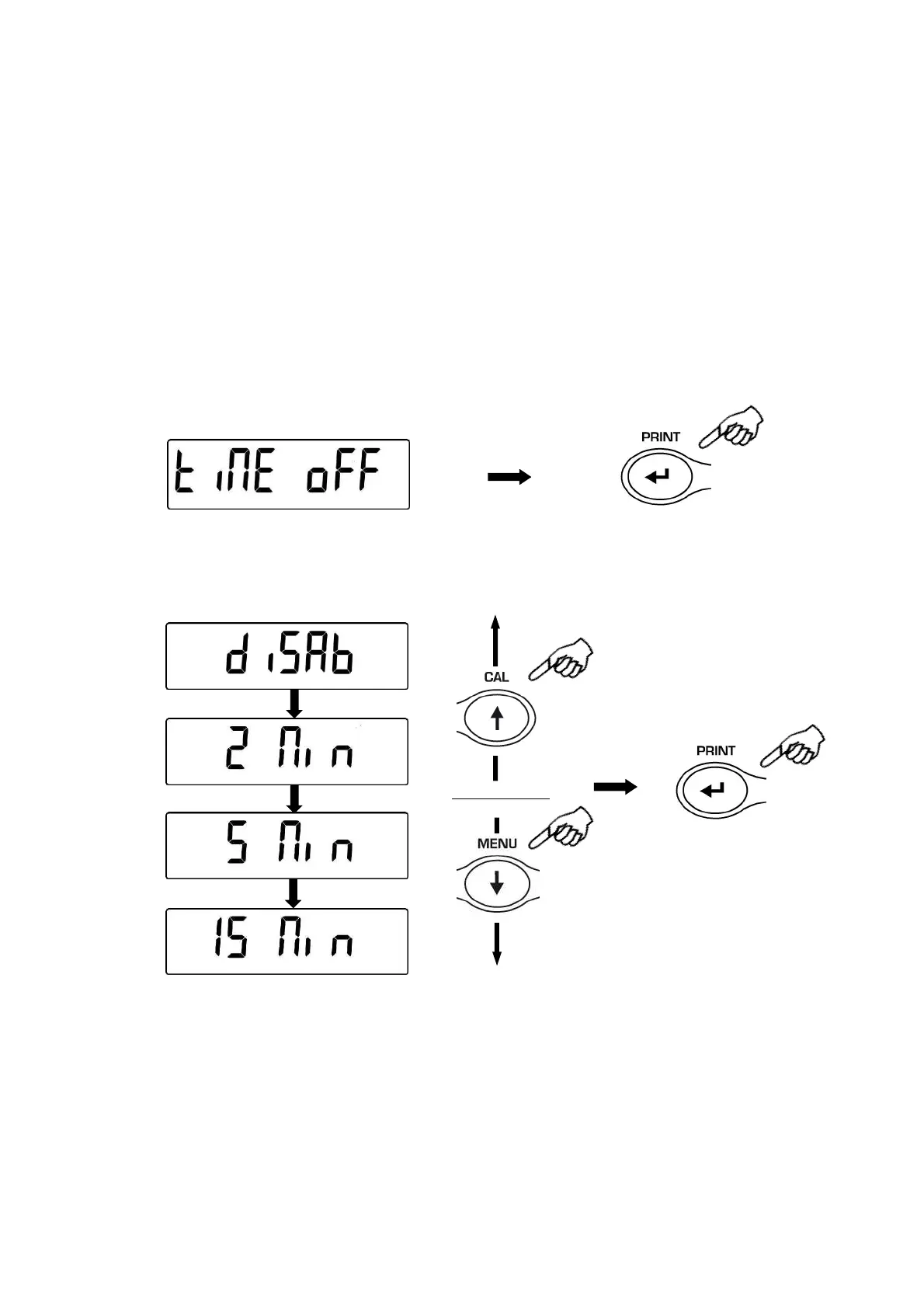 then press MENU button until the message “tiME oFF ” then confirm by pressing the
