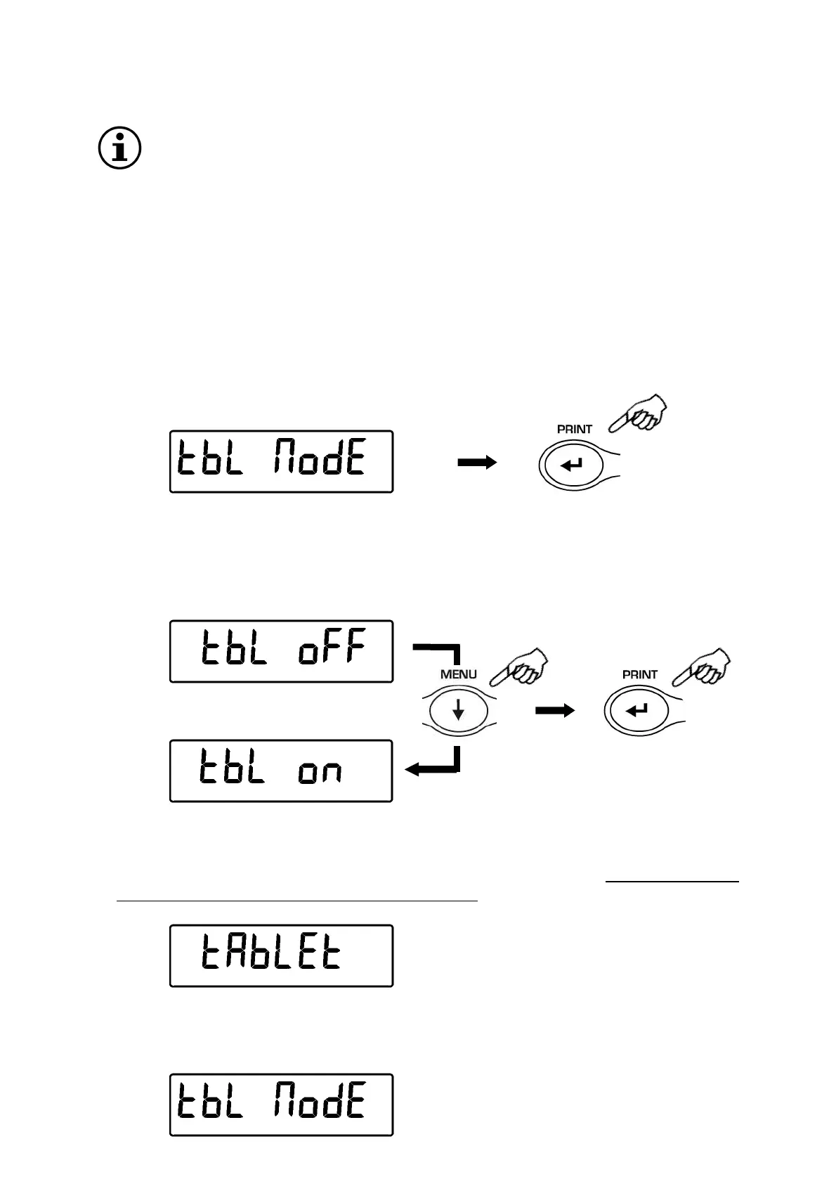 and the message “TABLET” will appear on the display of balance. From this moment