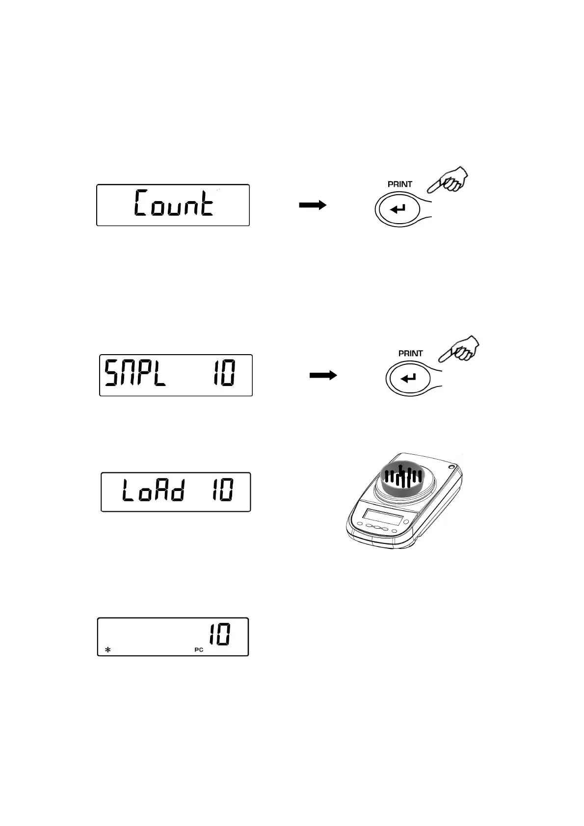 Load on the pan the number of pieces displayed on the balance display