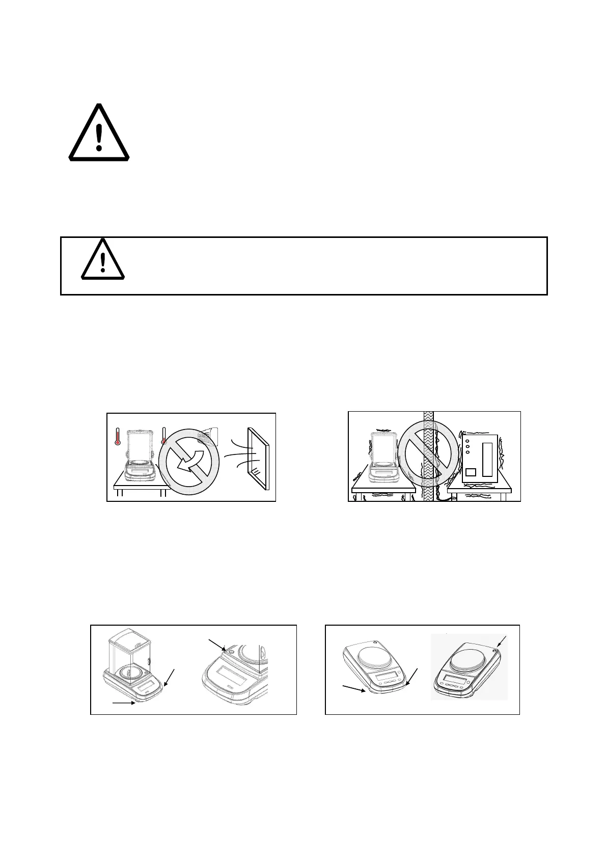 Do not install the balance in a place with air flows, heavy thermal changes and