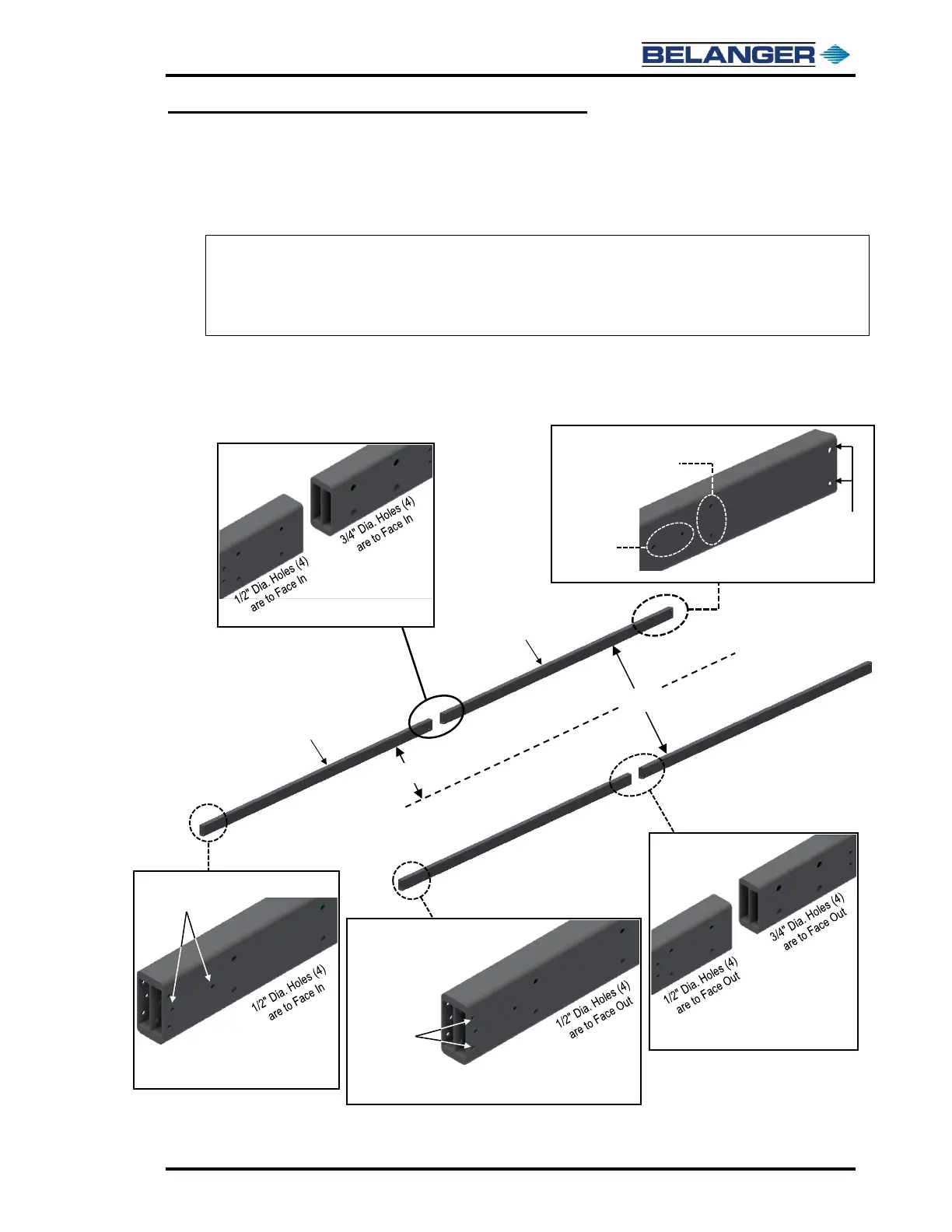 7) Make sure the stamped letter “B” is facing down on all four (4) Rails and are toward the center