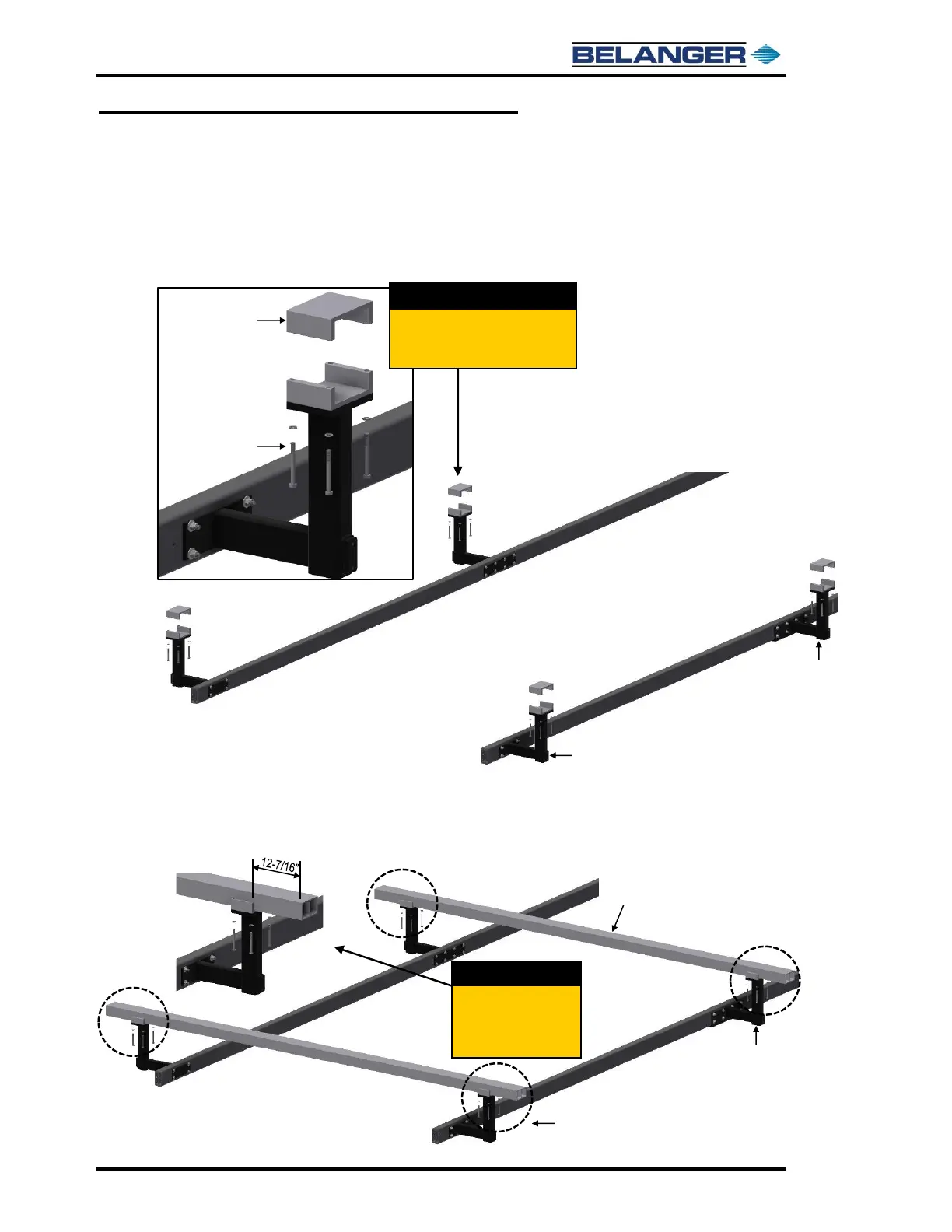 15) If the width between the bay walls is less than 190” apart, the Head Beams must be cut down.