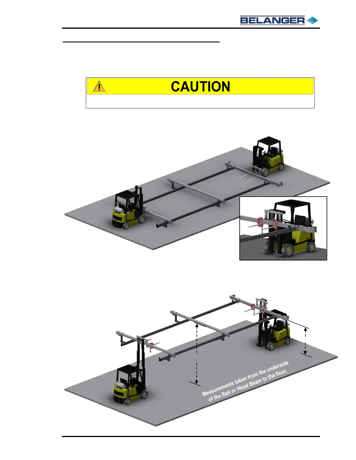 2) Place one forklift under the Entrance Head Beam in the center and one under the Exit Head