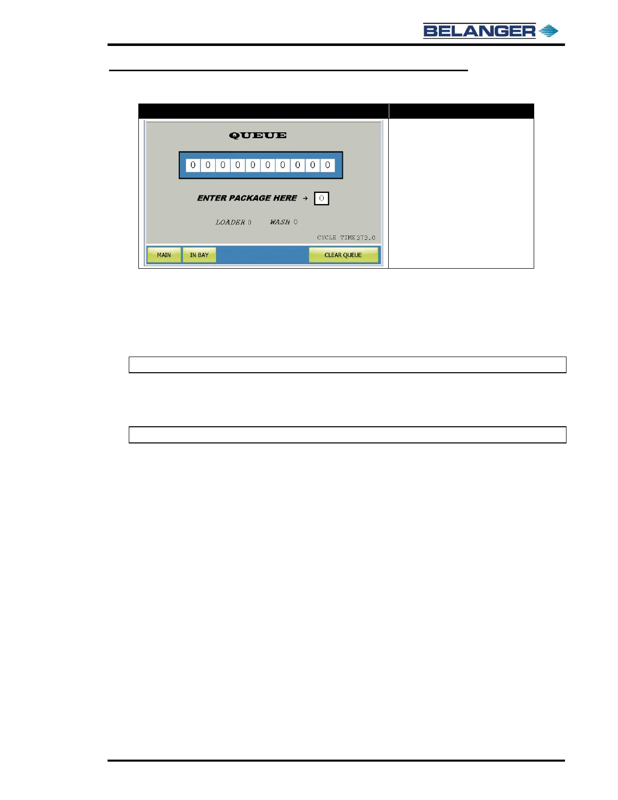QUEUE, it will be inserted into the right most position. As washes are used, the QUEUE will shift all packages to the right