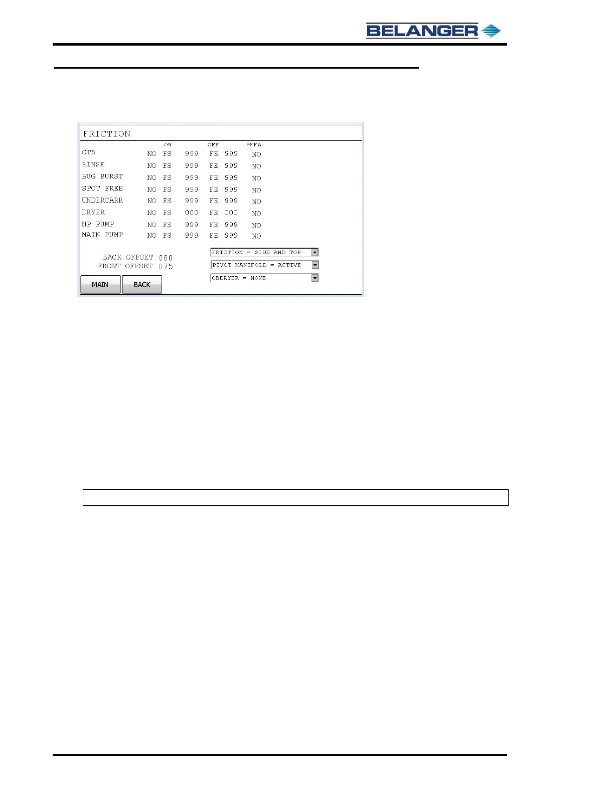 FRICTION = NONE: Touch the screen in this area to select a friction application type, TOP ONLY, SIDE ONLY, SIDE