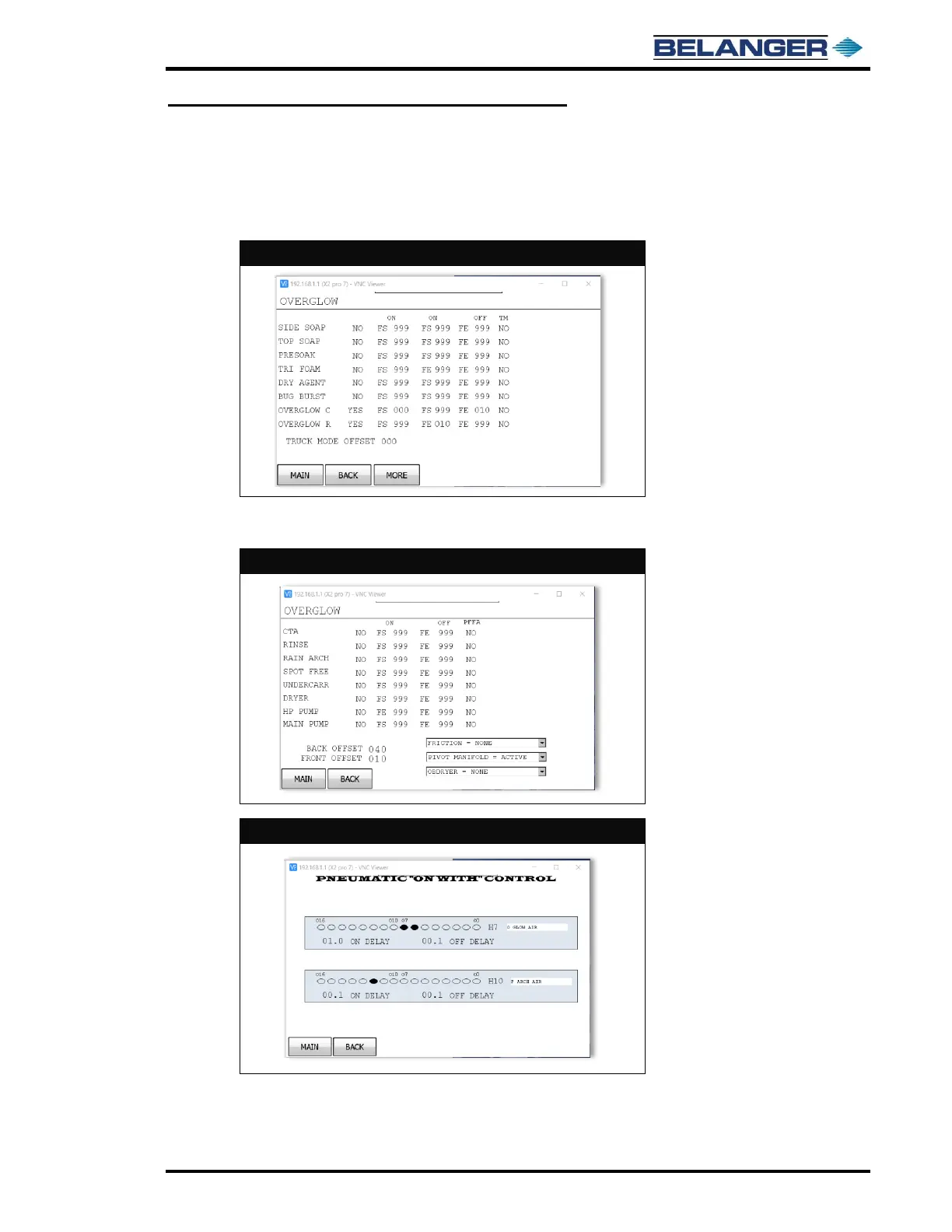 Head pneumatic H7 is typically foaming air for OVERGLOW. Set ON DELAY to 0 and OFF delay to 0 seconds for initial