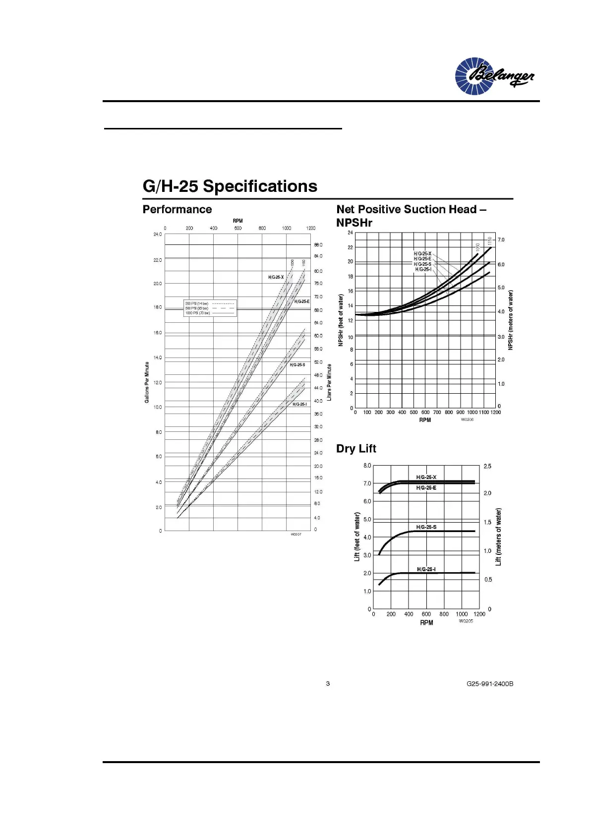 Belanger DuraFlo - Pump Performance Data