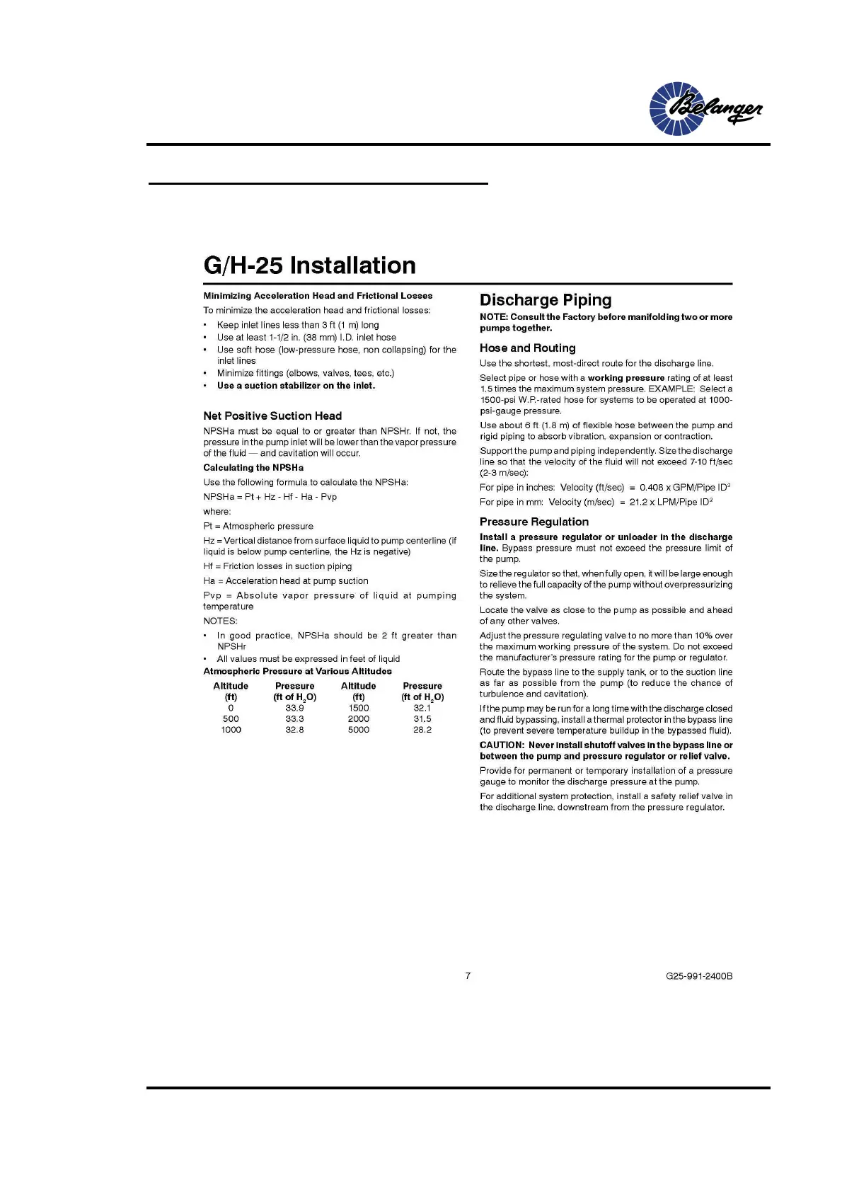 Belanger DuraFlo - Discharge Piping and Pressure Regulation