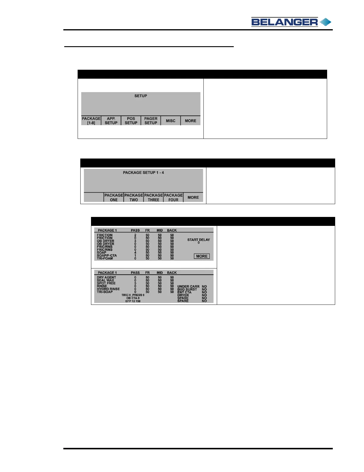 Exit Operation: These are selectable at the bottom, right side of the second Package Setup screen. Toggle to