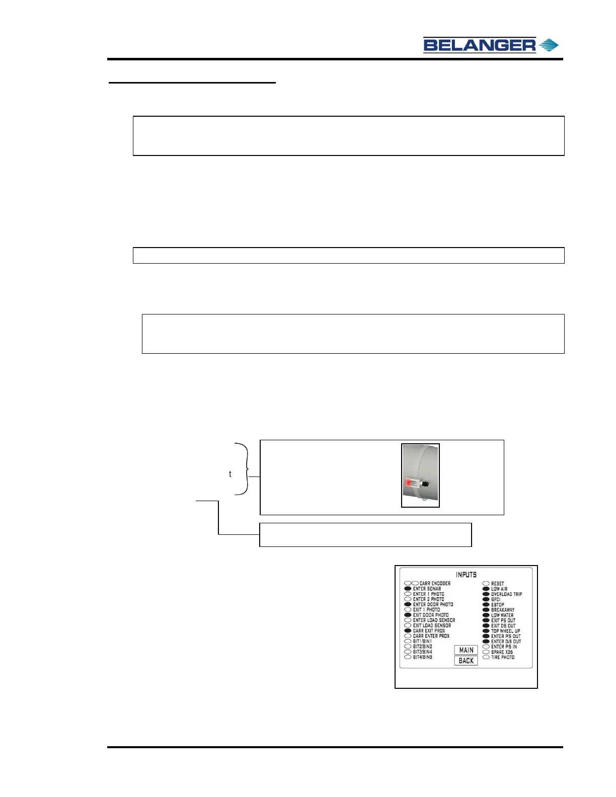• Verify the following inputs on the HMI (E-1063 Human Machine Interface).
