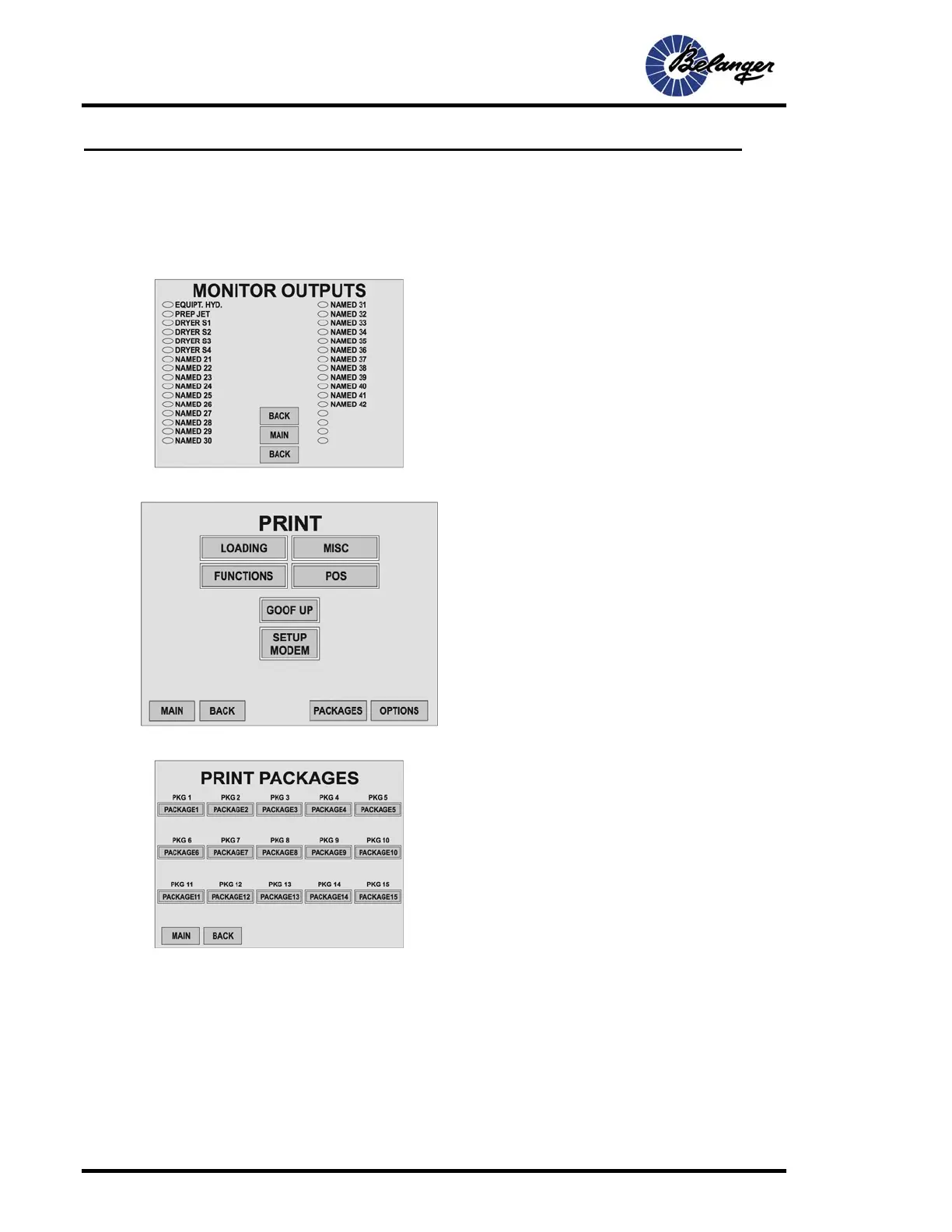 • Pressing the MAIN, BACK, PACKAGES or OPTINS