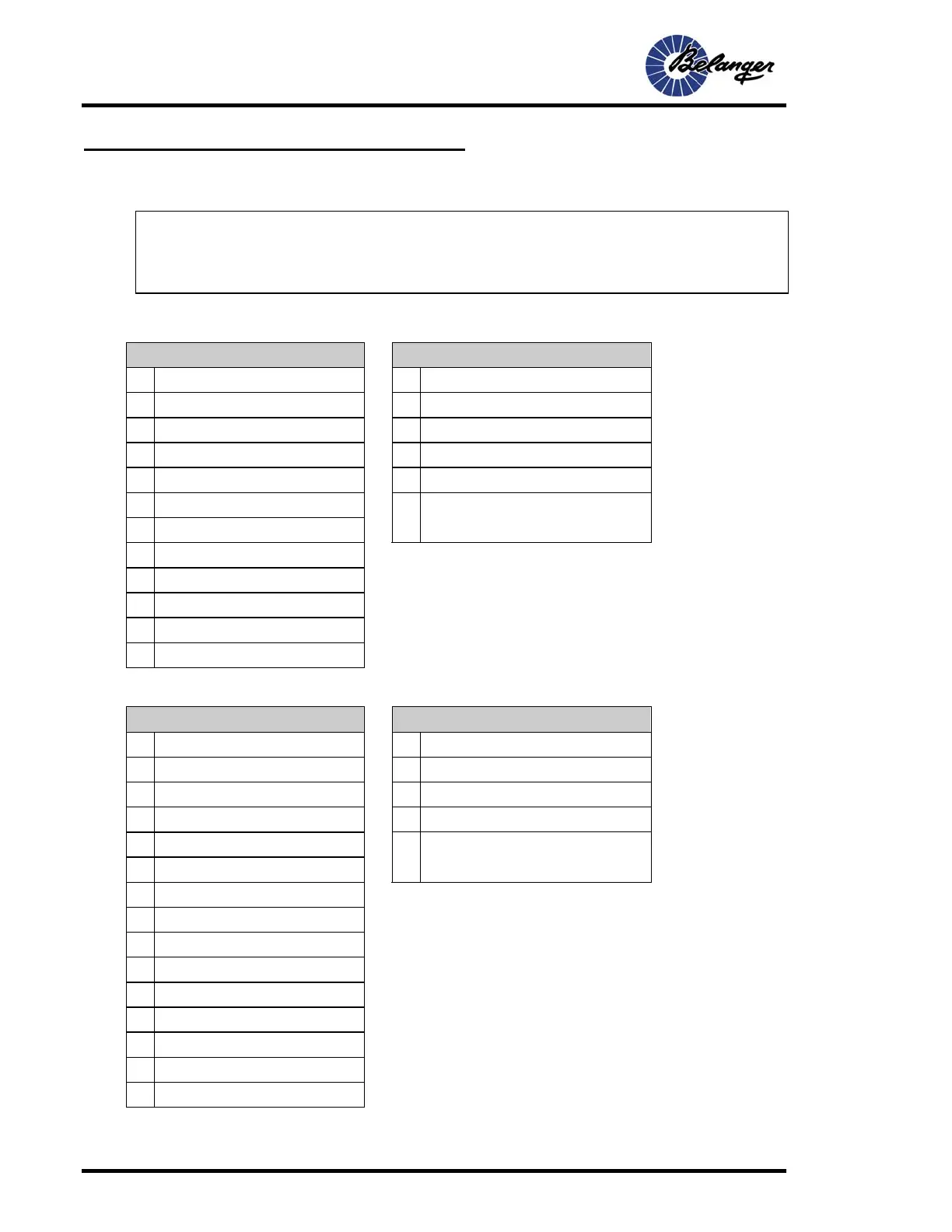 6-2 Belanger, Inc. * 1001 Doheny Ct. * Northville, MI 48167 * Ph (248) 349-7010 * Fax (248) 380-9681 1MANUL102