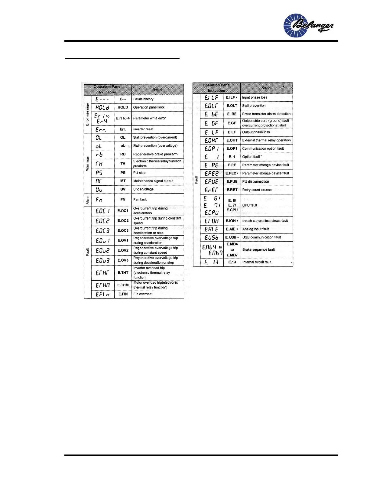 Belanger INTEGRA E-1063 - E700 Drive Alarms and Faults