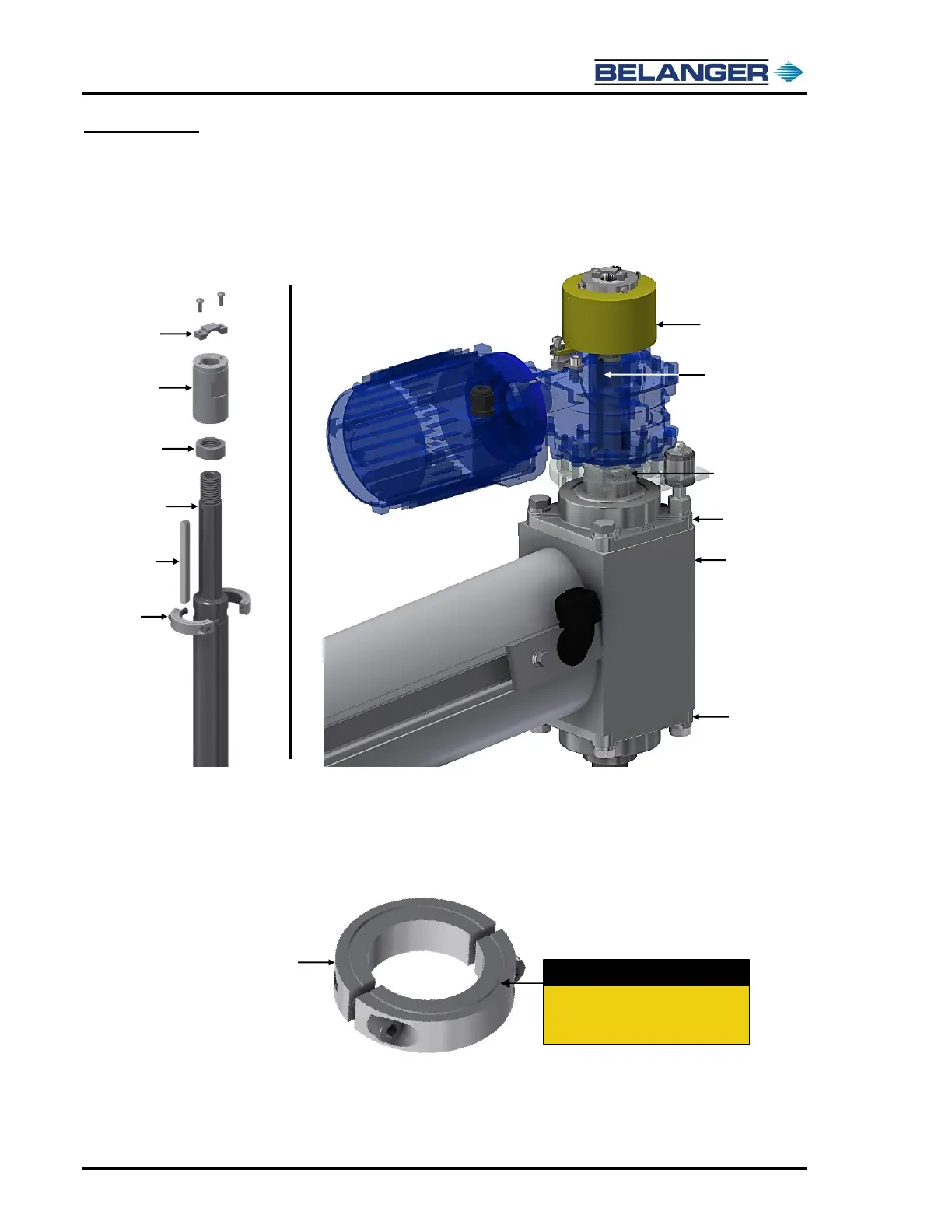 split-locking collar. There is a groove in the driveshaft to accommodate the locking collar. See the images