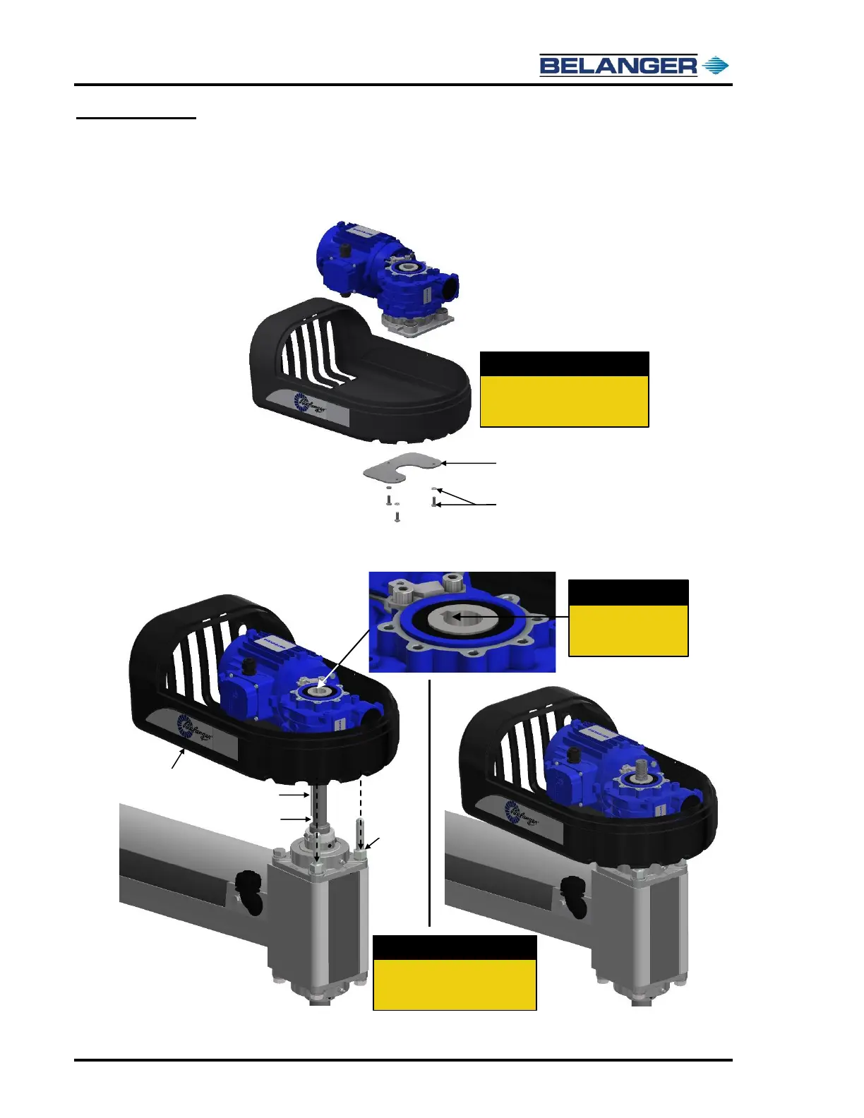 3) Once the Key and Keyway are aligned, slide the Motor, Gearbox, and Cover Assembly onto