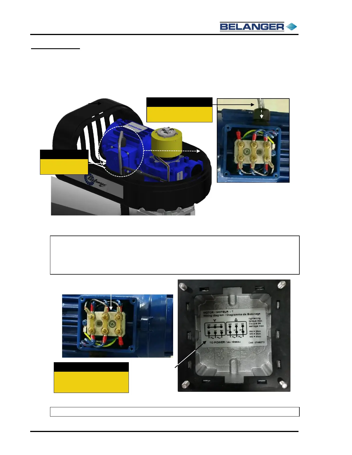 26) Remove the Junction Box Cover on the Motor. Route the Motor Lead through the cord grip on