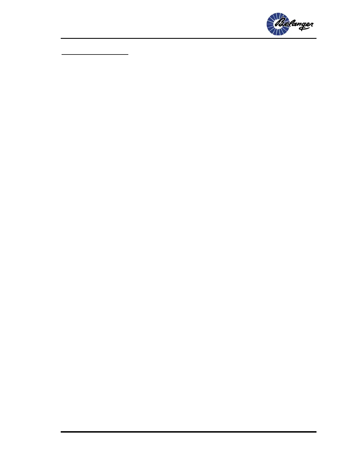 1MANUL850 Belanger, Inc. * 1001 Doheny Ct. * Northville, MI 48167 * Ph (248) 349-7010 * Fax (248) 380-9681 1
