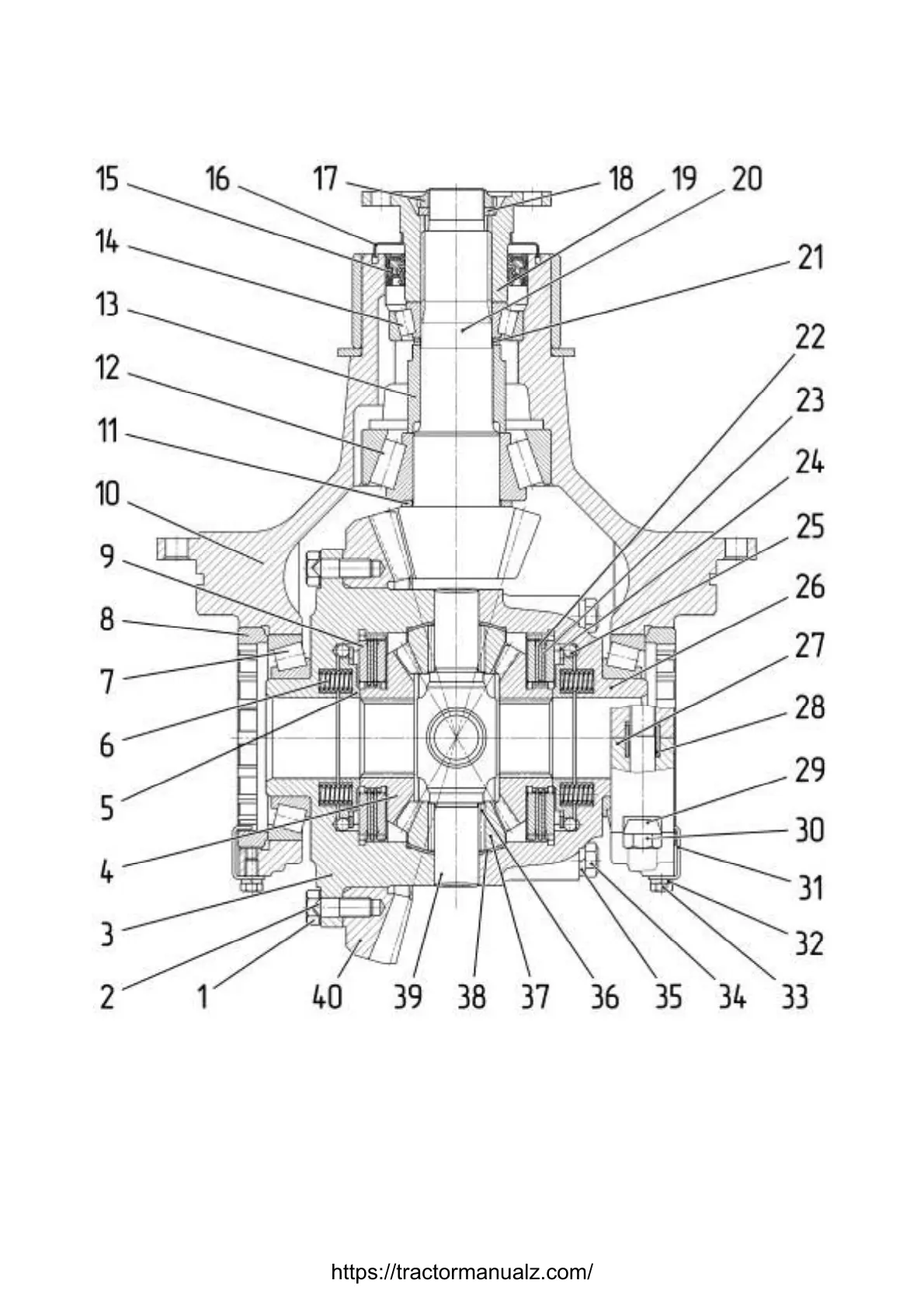 disk; 24 –locking ring; 25 – ball; 26 –differential cover; 27 –bearing body; 28 –bushing; 29 –
