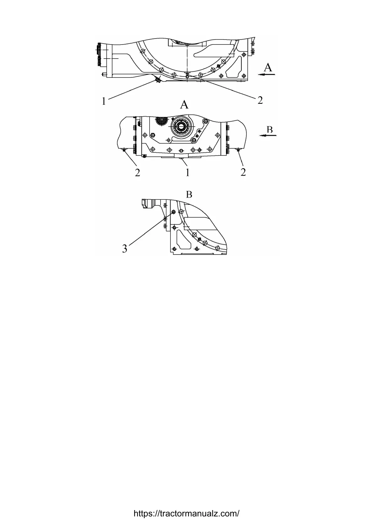 - place the tractor on level horizontal ground with plug 1 locating in the lowermost