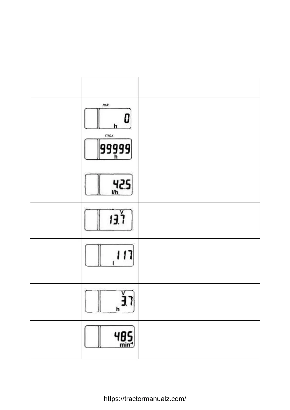 Table 2.3 – Samples of displaying operating parameters of the tractor on the multifunctional