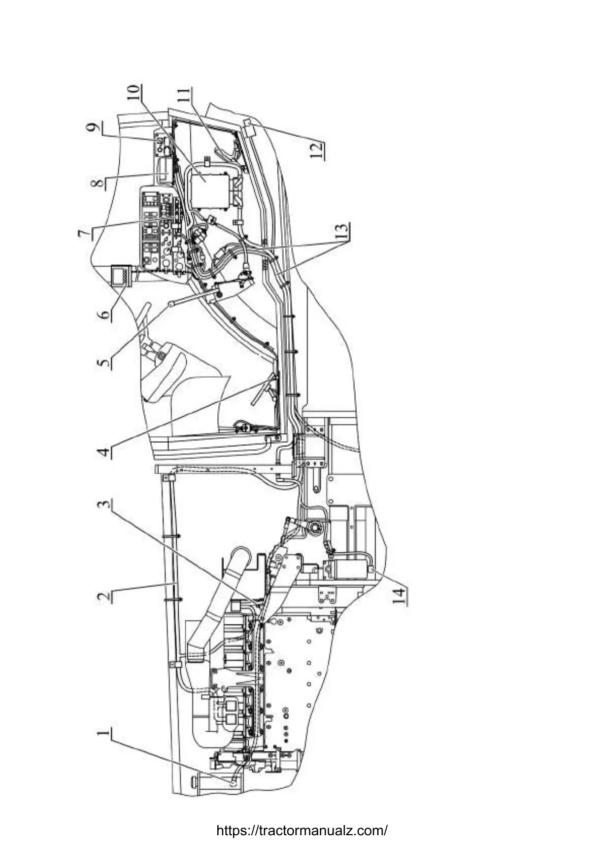 1 – coolant level sensor; 2 – engine harness extender; 3 – SCR connecting harness; 4 – electronic foot pedal to control en-