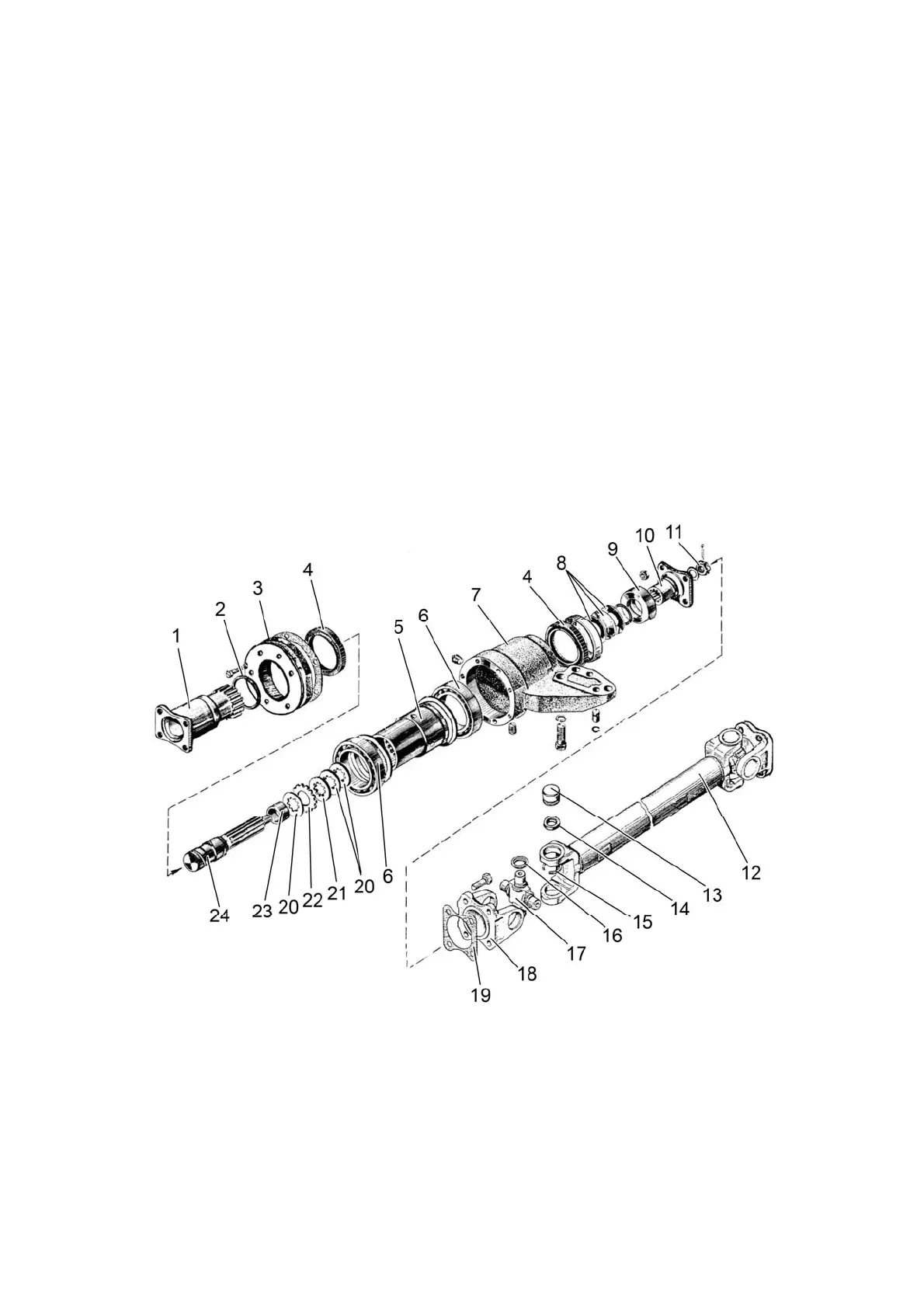 14. The cardan shafts are secured by flanges 18 to flanges of the transfer box, intermedi-