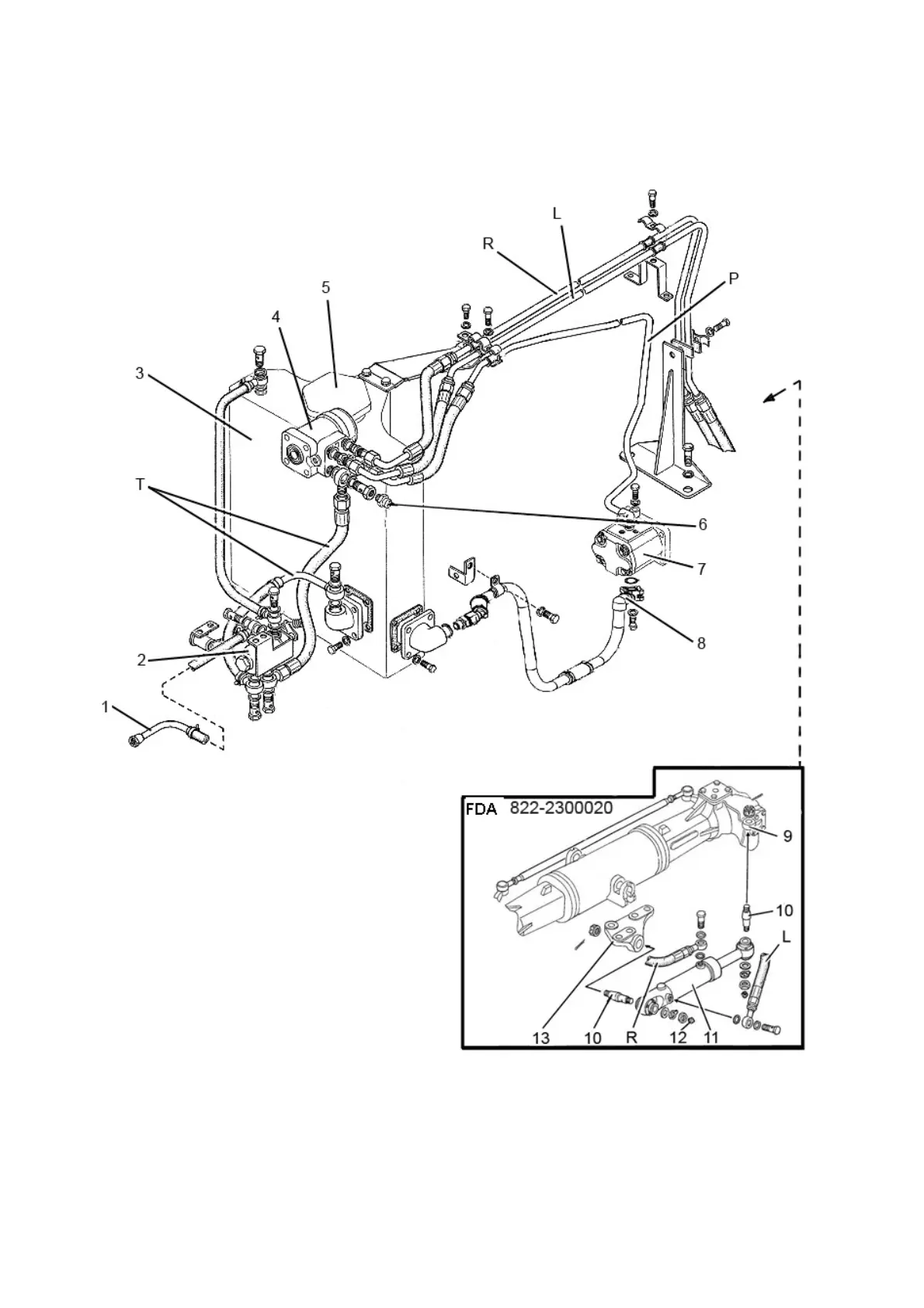 hydraulic line; Т – drain hydraulic line; L – left turn hydraulic line; R – right turn hydraulic