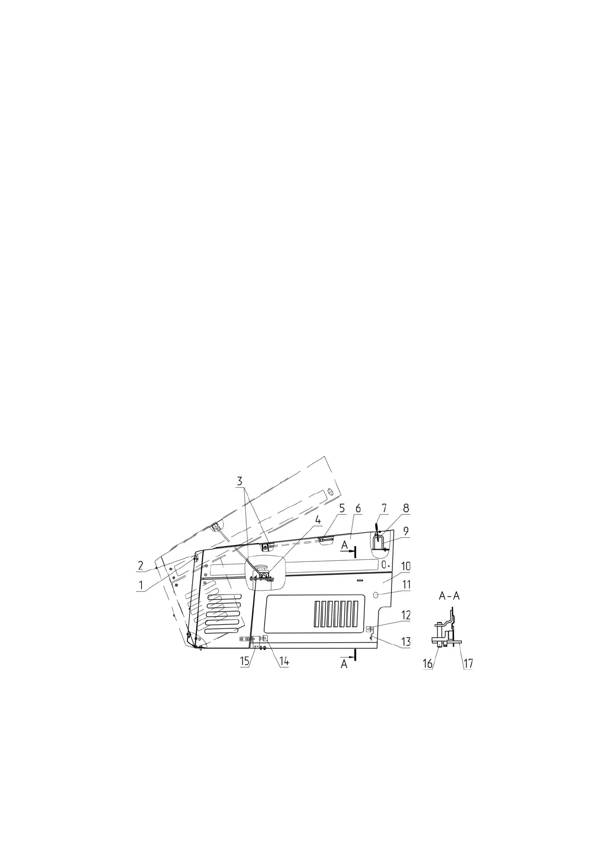 plate; 12, 14 – latch; 13 – bracket; 15 – bracket; 16 – detent; 17 – lock.