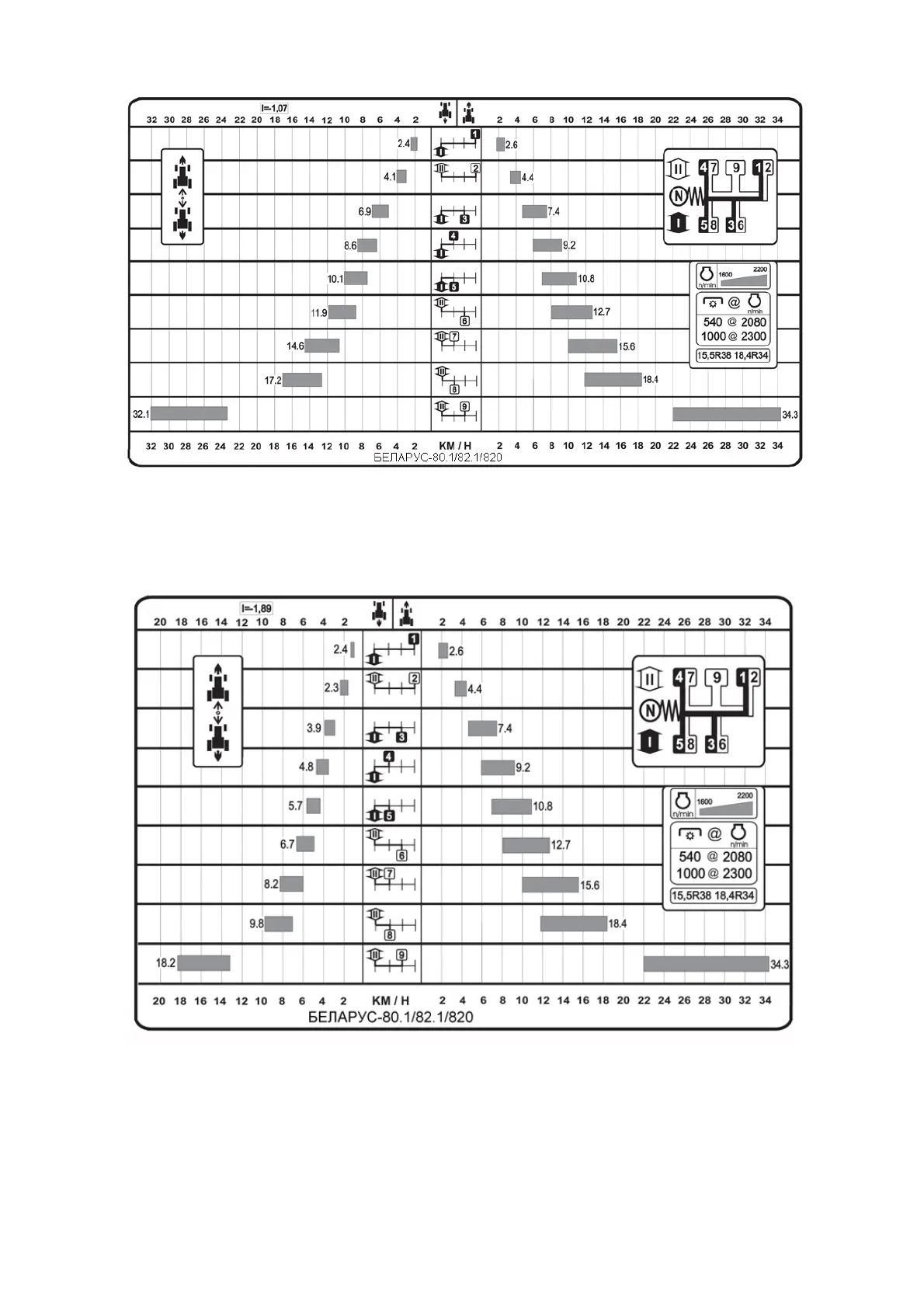 The velocity diagram table of tractors “BELARUS-80.1/82.1/820” equipped with